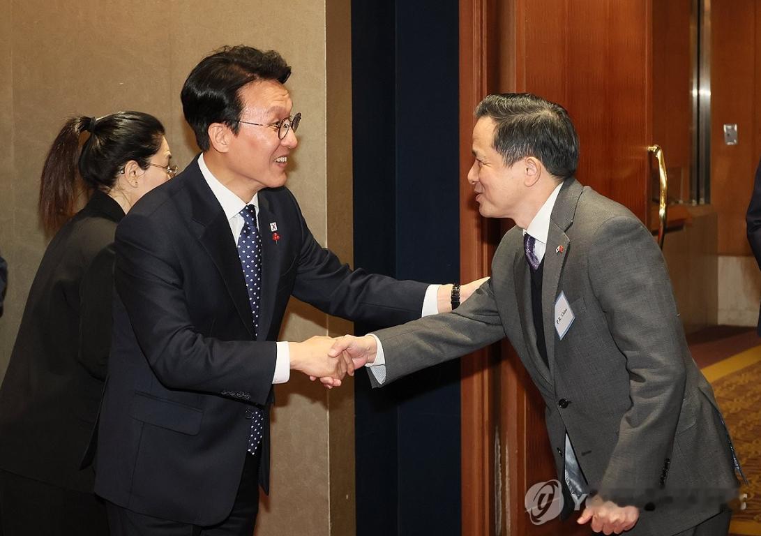 12月3日,韩联社网站专门发了一张照片,配文是“韩总理与中国大使”。 我专门去查了以下这张图片,这是今天(12月3日),韩国国务总理金民锡邀请各国驻韩外交使团在首尔市中区的乐天酒店举办招待会时的图片。当时韩国总理金民锡在迎接中国使团时,主动握了中国驻韩国大使戴兵的手。需要说明的是,出席招待会的各国驻韩外交使节非常多,韩联社唯独挑中这一张放出来,不知何意? 一场常规的外交招待会,各国使节云集,握手寒暄本是再正常不过的礼节。首尔乐天酒店灯火辉煌,衣香鬓影之间,韩国总理金民锡穿梭于人群,与来自世界各地的外交官们交换着礼貌的微笑和客套的话语。 在这样一场标准的外交社交场合,每一次握手,每一次对视,似乎都遵循着一套早已写好的剧本。然而,当韩联社的镜头聚焦于金民锡与戴兵大使那只交握的手,并将其作为当天的代表性图片推送出来时,这个常规动作瞬间被赋予了超出其本身的解读空间。 这张照片之所以显得格外突出,是因为它发生在一个微妙的时刻。咱们不妨回想一下过去一段时间里中韩关系的氛围,那股若有若无的“寒意”并非空穴来风。从某些领域的摩擦到民间情绪的波动,两国关系仿佛走在一条需要小心翼翼维持平衡的钢丝上。 就在不久前,困扰两国人员往来的签证问题才刚刚出现转机,这本身就是一个信号,表明双方都有意让紧绷的弦放松一些。在这样的背景下,一个来自东道主总理的“主动”握手,其象征意义就远远超过了动作本身。它像是在平静但暗流涌动的湖面上,轻轻投下了一颗石子。 那么,韩联社作为韩国最具影响力的国家通讯社,它的编辑们在海量的现场照片中,偏偏选中了这一张,这背后的考量就更有意思了。这绝不是一次随机的选择,而是一次精心编排的“视觉叙事”。 媒体,尤其是官方背景深厚的媒体,其发布的每一张图片、每一段文字,都可能是在传递某种特定的信息。这张照片是想向外界展示韩国政府希望稳定并改善对华关系的姿态吗?还是想通过突出“主动握手”这一细节,来强调韩国在双边交往中的从容与主导? 又或者,这仅仅是因为这张照片在构图和人物表情上最为完美,最具新闻张力?我们无法得知编辑室里的真实讨论,但这个选择本身,就构成了一个值得玩味的“伏笔”。 这起事件也折射出韩国当下复杂的外交处境。作为美国的盟友,韩国在诸多国际议题上需要与华盛顿步调一致;但作为中国的近邻和最大的贸易伙伴,任何对华关系的剧烈波动,都会直接冲击其经济的脉搏。 这种“左右逢源”的平衡术,考验着每一位韩国决策者的智慧。总理的这次握手,或许可以被看作是这种平衡术的一次具体实践,它既没有过分热情,也没有显得冷淡,恰到好处地表达了“我们重视与中国的关系”这一核心信息。而韩联社将这个瞬间放大,等于是在告诉国内外观众:看,我们正在处理这个重要而复杂的关系。 一张照片,定格的只是一个瞬间,但瞬间背后,是涌动的时代潮流和复杂的大国博弈。握手之后,两位外交官交谈了什么,彼此的表情是真诚还是客套,我们都无从知晓。外交的魅力与挑战恰恰在于此,它充满了仪式感,又充满了不确定性。 每一个微笑背后可能隐藏着深思熟虑,每一次伸手都可能牵动着未来的走向。这张被单独拎出来的照片,就像一个开放式的电影结尾,它给了观众一个画面,却把解读的权利和思考的空间留给了每一个人。 这究竟是关系回暖的序曲,还是一次短暂的外交礼节性互动?韩联社的这步棋,究竟意欲何为?或许,答案就在接下来的时间里,在两国未来的每一次互动中慢慢浮现。你怎么看这张照片背后的故事呢?