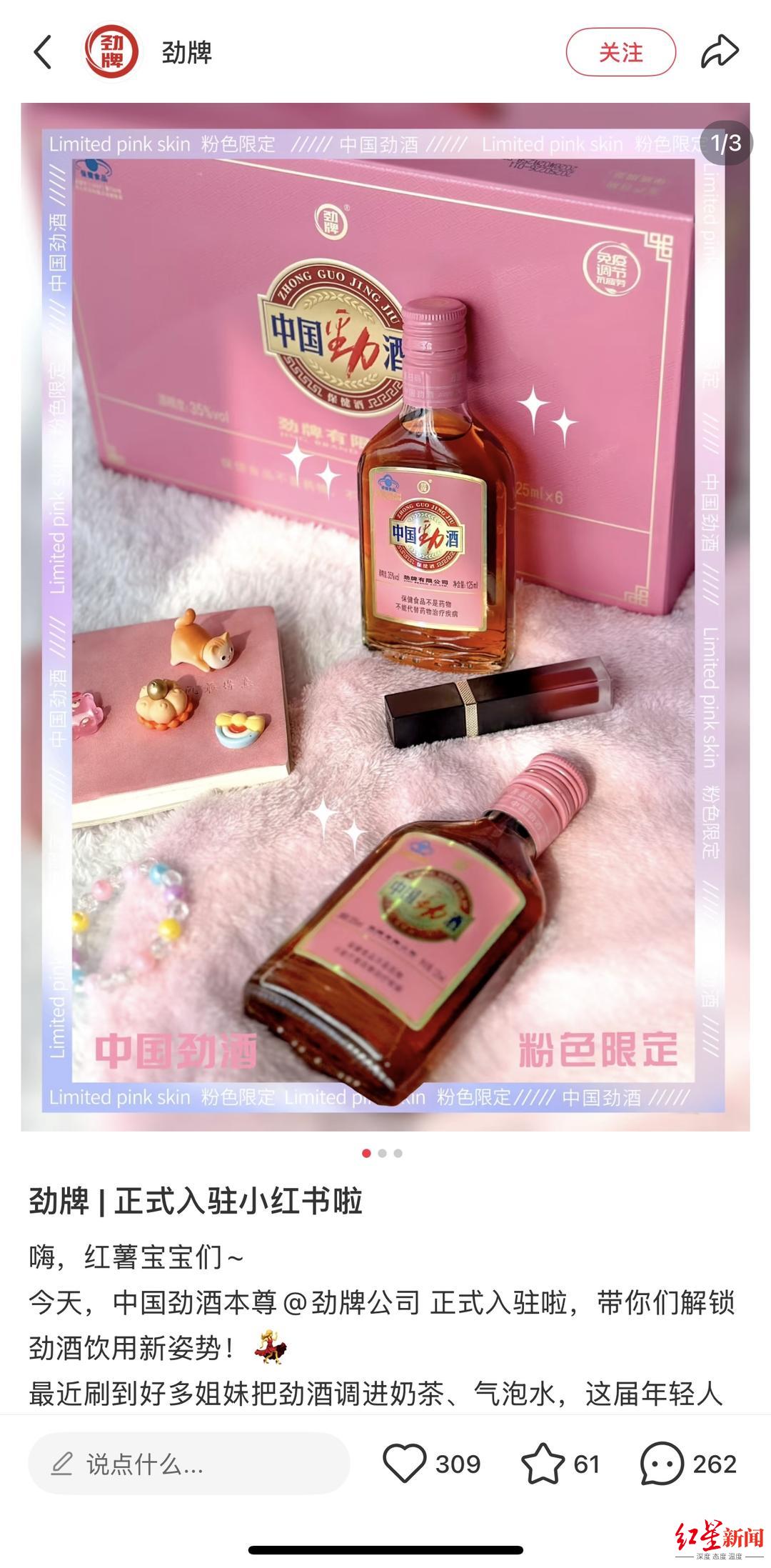 2023年以来,还有用户在社交平台上分享喝劲酒能缓解痛经、解决手脚冰凉、使月经更加规律的内容,将含有黄芪、枸杞子、肉桂、当归等保健成分的劲酒称为“月经神仙水”。今年2月,劲牌跟进该话题,在3月8日妇女节推出粉色包装的劲酒,将这款长期以来主打中老年男性的酒品,向女性市场调整。