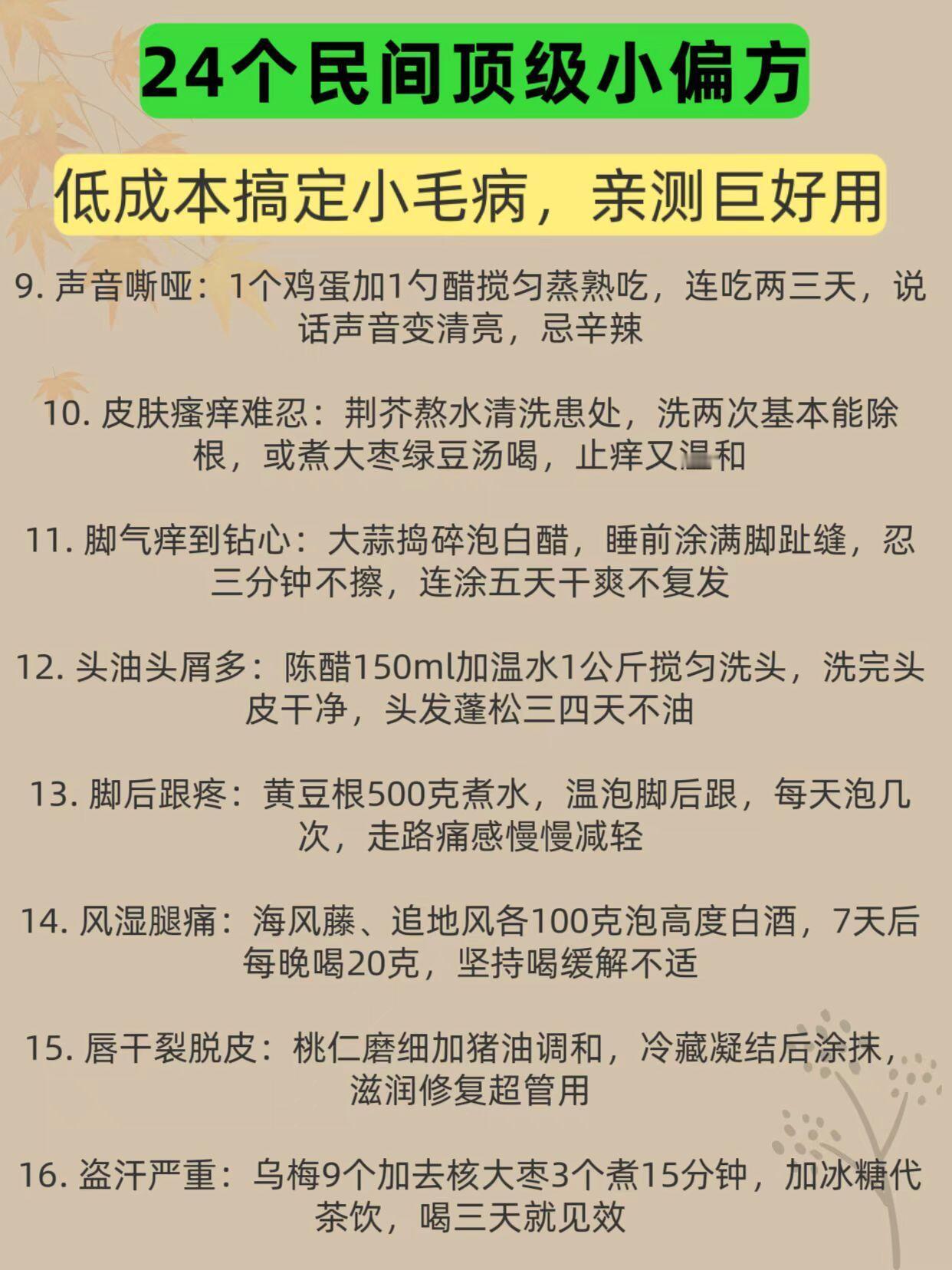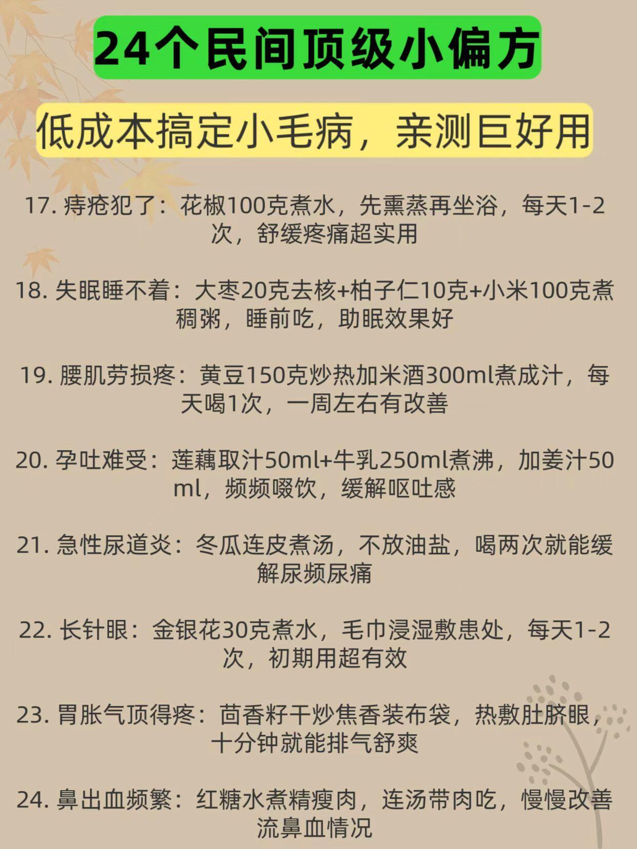 亲测有用、24条民间顶级小偏方、亲测巨好用生活实用小技巧