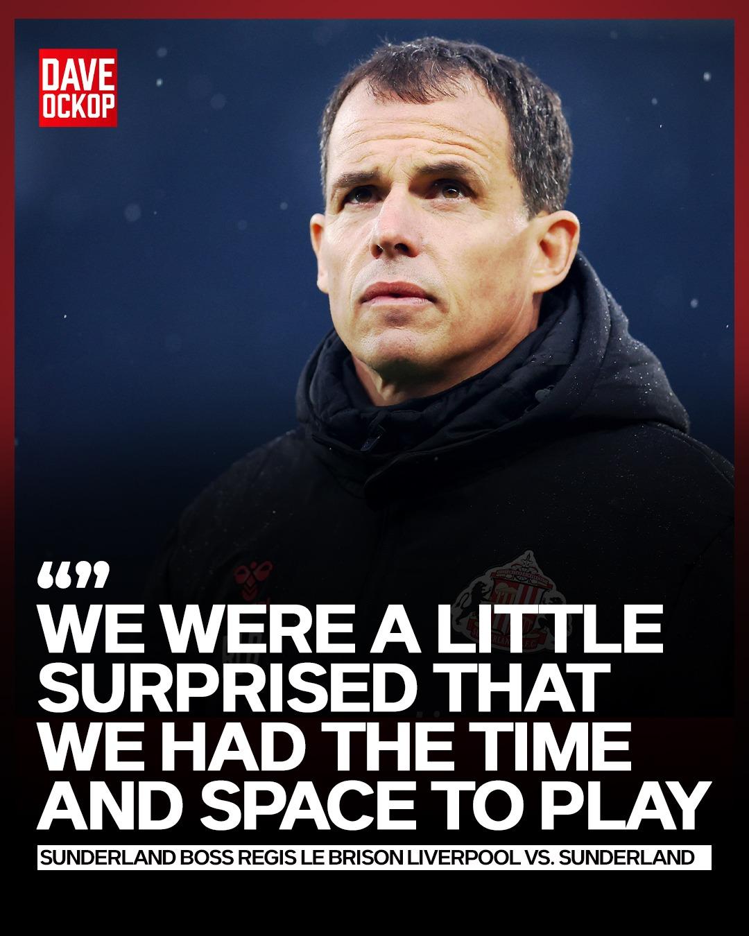 【略显吃惊】桑德兰客场1-1战平利物浦,主帅勒布里斯谈及对阵利物浦的比赛时表示:“今天我们获得了充裕的进攻时间和空间,这有些出乎意料🤨,或许对手并未预料到我们的表现能达到这样的水准。”利物浦1-1桑德兰