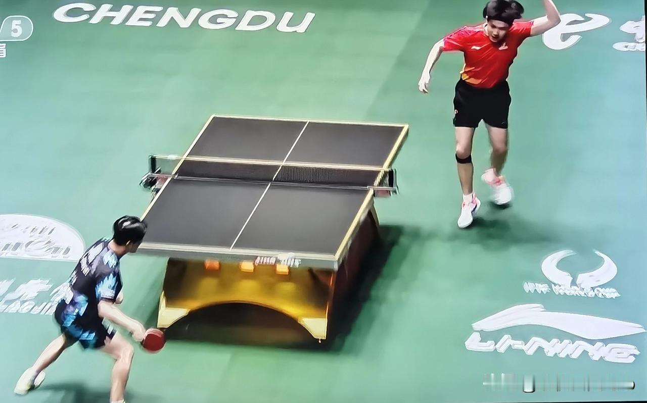 看着王楚钦对着球台连扇三下,安宰贤晕菜了。大比分0:6落后,韩国队败局已定。但国家荣誉要捍卫。安宰贤一上场就放手一搏,硬是在局分2:5落后情况下打了王楚钦一个5:0,反以7:5领先。还好世界第一经历过大风大浪,稳住了心态,调整好节奏,以11:9拿下第一局。 第二局王楚钦赢下一分后想了想,看到球台上似乎有粒灰尘,就用手扇了一下、又扇一下,又又扇了一下。接下来安宰贤再没有了前一局的表现,好像不会打了。王楚钦打他一个10:1。居然以11:2拿下了中国队取胜的最后一分。 最后一个球(图二)更是有如神助,大头随意一个“超低空飞行”,球从网子外面直砸在对方的球台上。安宰贤愣了一下,这才走过来认输。 安宰贤怎么也想不通,这“三扇”就像施了法术,捆住了自己的手脚。