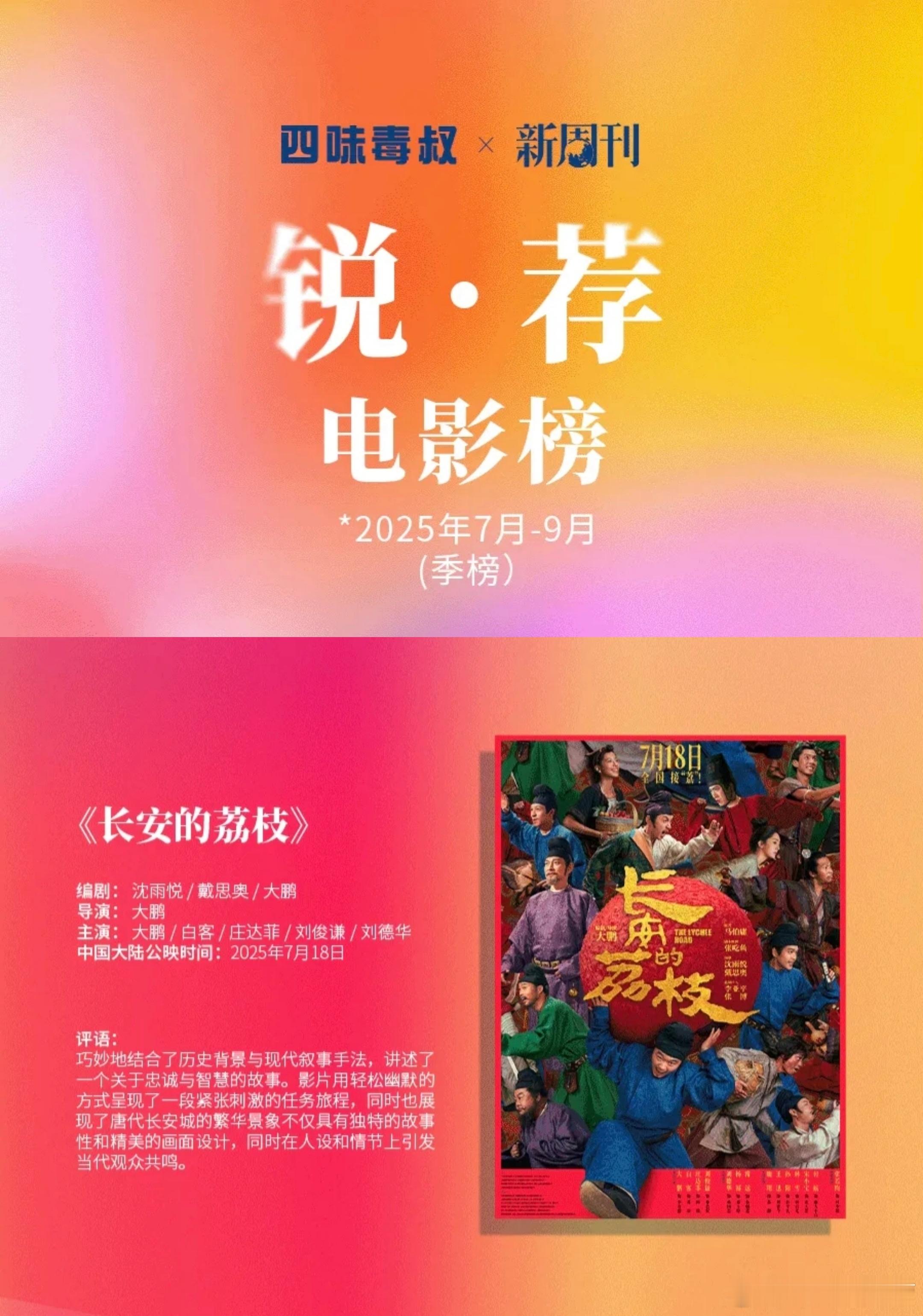 新周刊——第3季度~锐・荐剧集榜——《生万物》同时,电影《长安的荔枝》上榜锐・荐电影榜!演员杨幂影视齐开花的2025第3季度!杨幂生万物