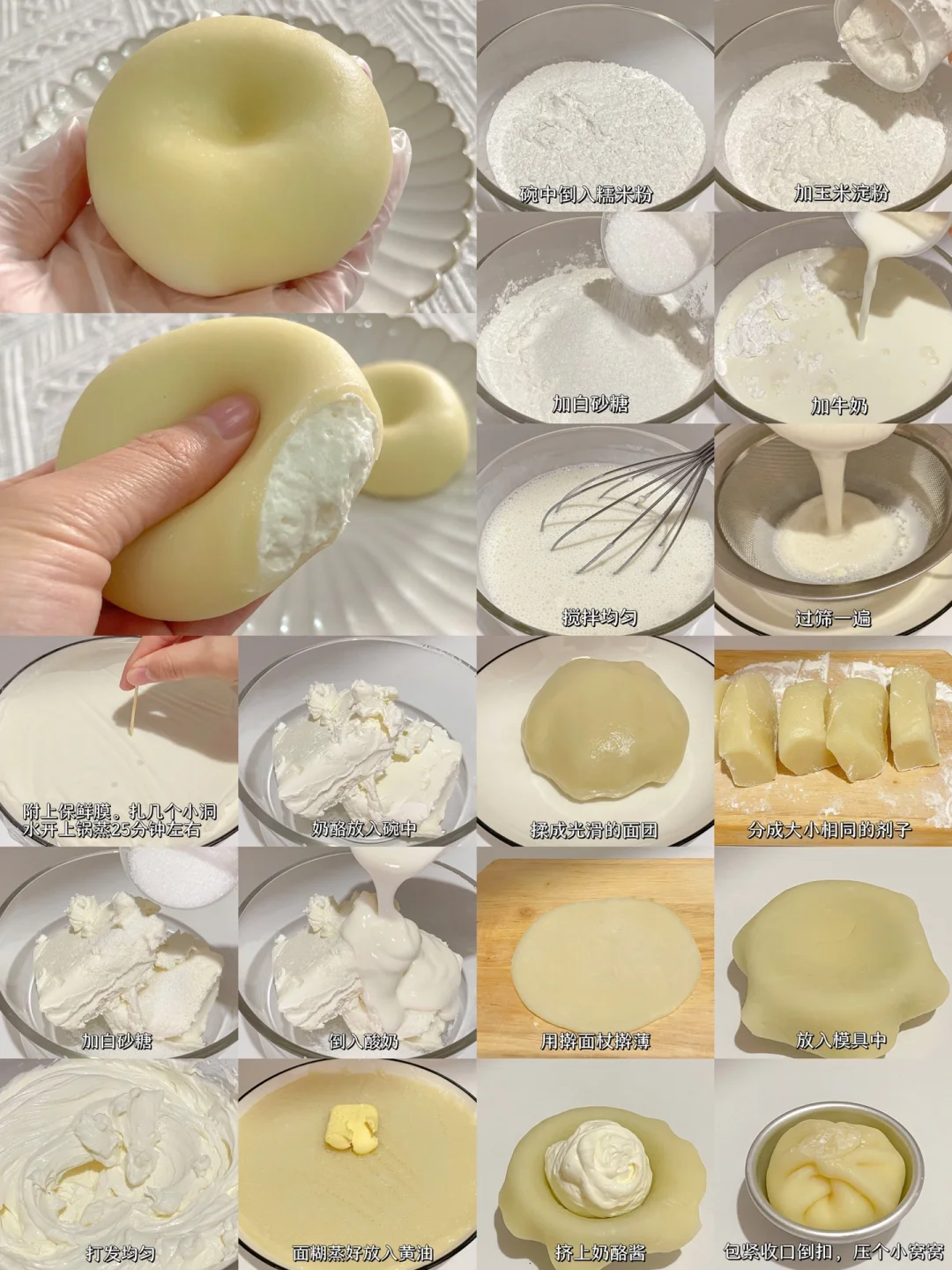 我的烘焙日常 大福&软酪&雪媚娘 每一款我都超爱~[色色R] 软糯拉丝,糯叽叽的甜品,谁吃谁爱~[吐舌头H] 多种口感的馅料直击你的味蕾[得意R][得意R] 1⃣️抹茶乳酪大福 2⃣️软酪 3⃣️珍珠奶茶雪媚娘 4⃣️椰香芋泥奶酪雪媚娘 喜欢的姐妹们快快安排起来吧[暗中观察R] 详细教程可以翻我主页,详细图文教程都有哟!