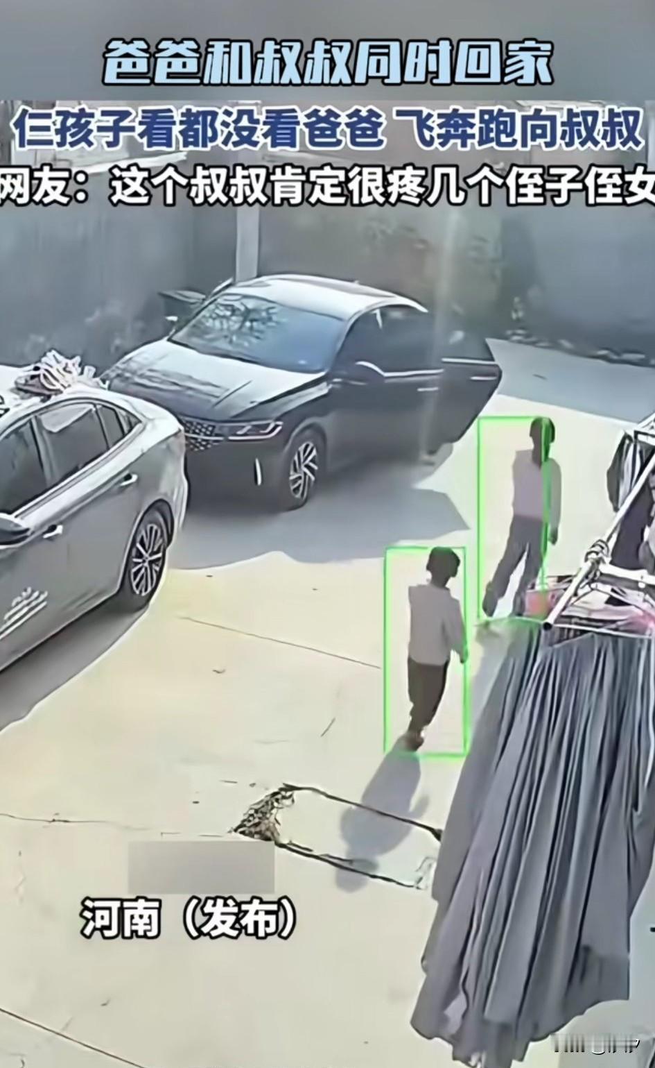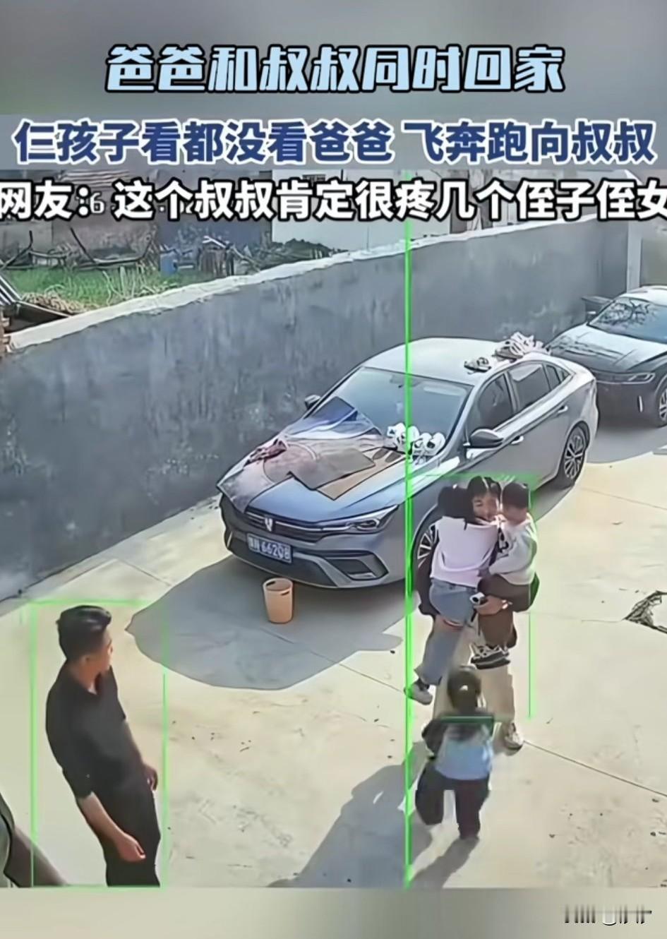 爸爸和叔叔同时开车回家, 自己的两个孩子都跑向了叔叔, 爸爸一脸懵逼, 叔叔开心的抱起了自己的两个侄, 爸爸只能在旁边尴尬的笑了笑, 三个孩子的举动很能说明问题, 这叔叔肯定没少给孩子买东西, 小孩子都是谁给他买东西? 谁对他好他就和谁亲, 这三个孩子不知道的还以为是他孩子, 看来这个父亲平时不会哄孩子, 这要是让外人看到了不得笑掉大牙, 我叔叔有这样三个侄儿也算有有福! 带侄子出去玩 带侄子出行 跟侄子上街 带侄子出去 与侄子的背影 两兄弟放学日常