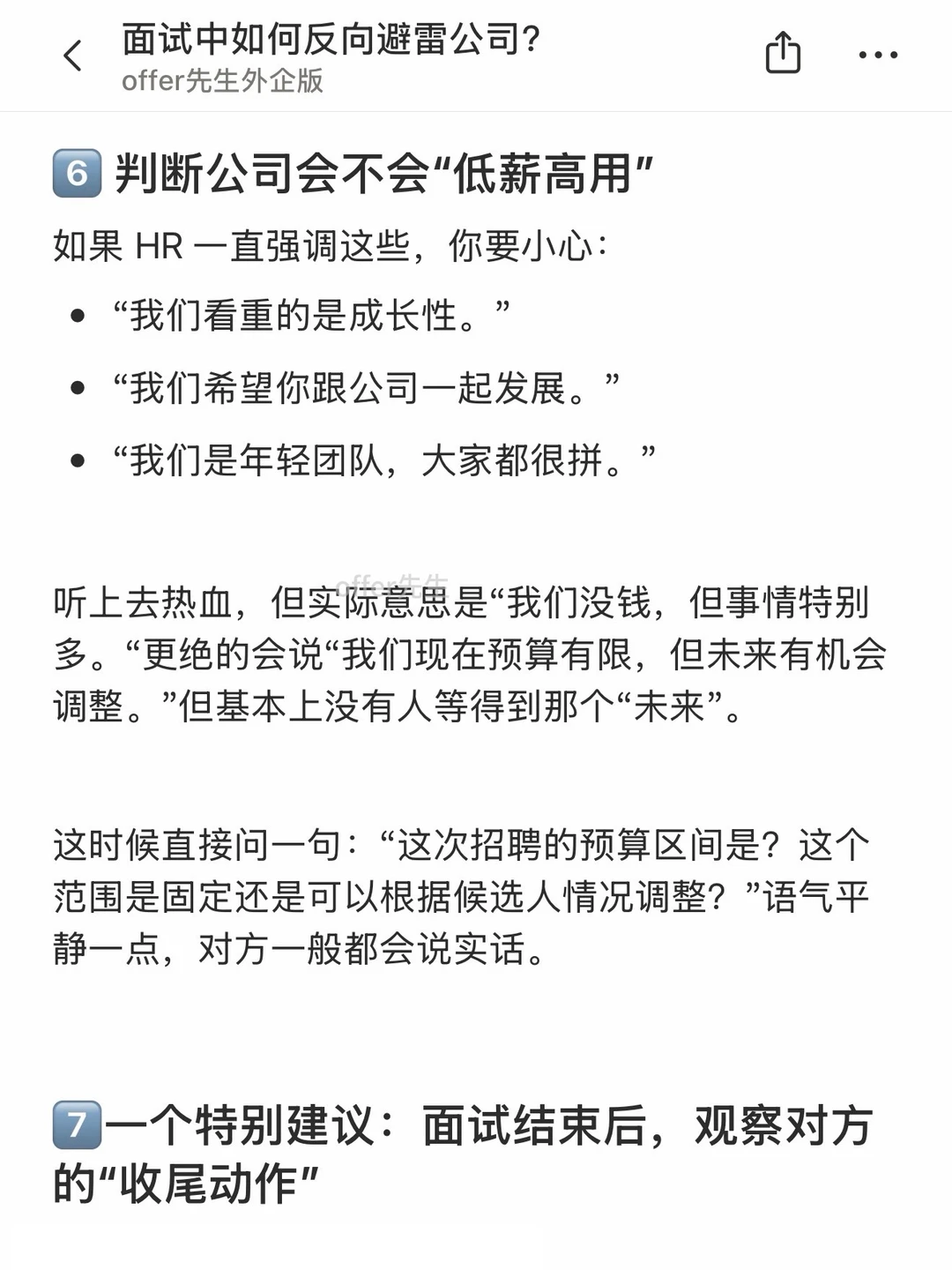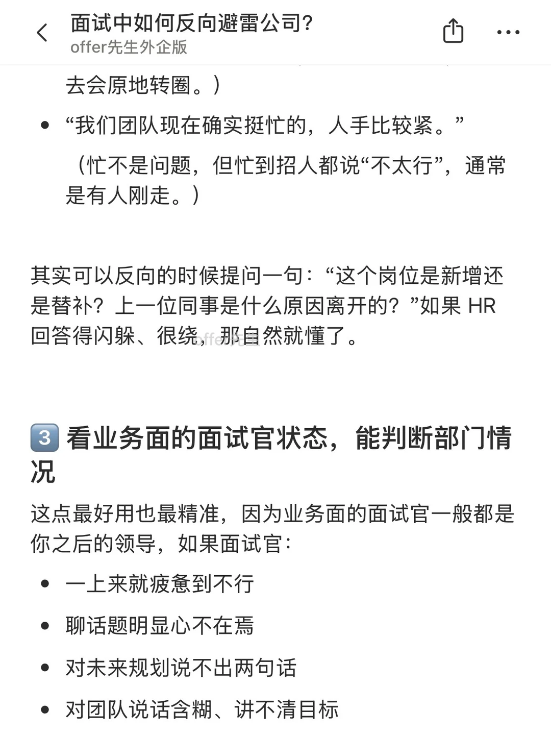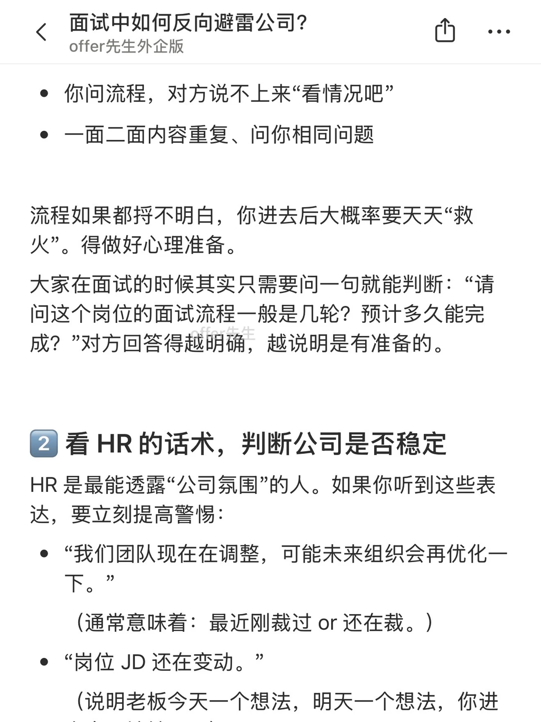 找工作的本质,不是被公司挑,而是“互相挑”。很多人找工作经常踩雷,其实就是因为只顾着好好表现,忘了自己也要观察公司。 . 面试里先避一些雷,真的能让你少走很多弯路。 . 一个认真分享“找工作”干货的账号。真诚、有料、不说空话,只想用真实经历、具体方法,帮大家少走点弯路 .