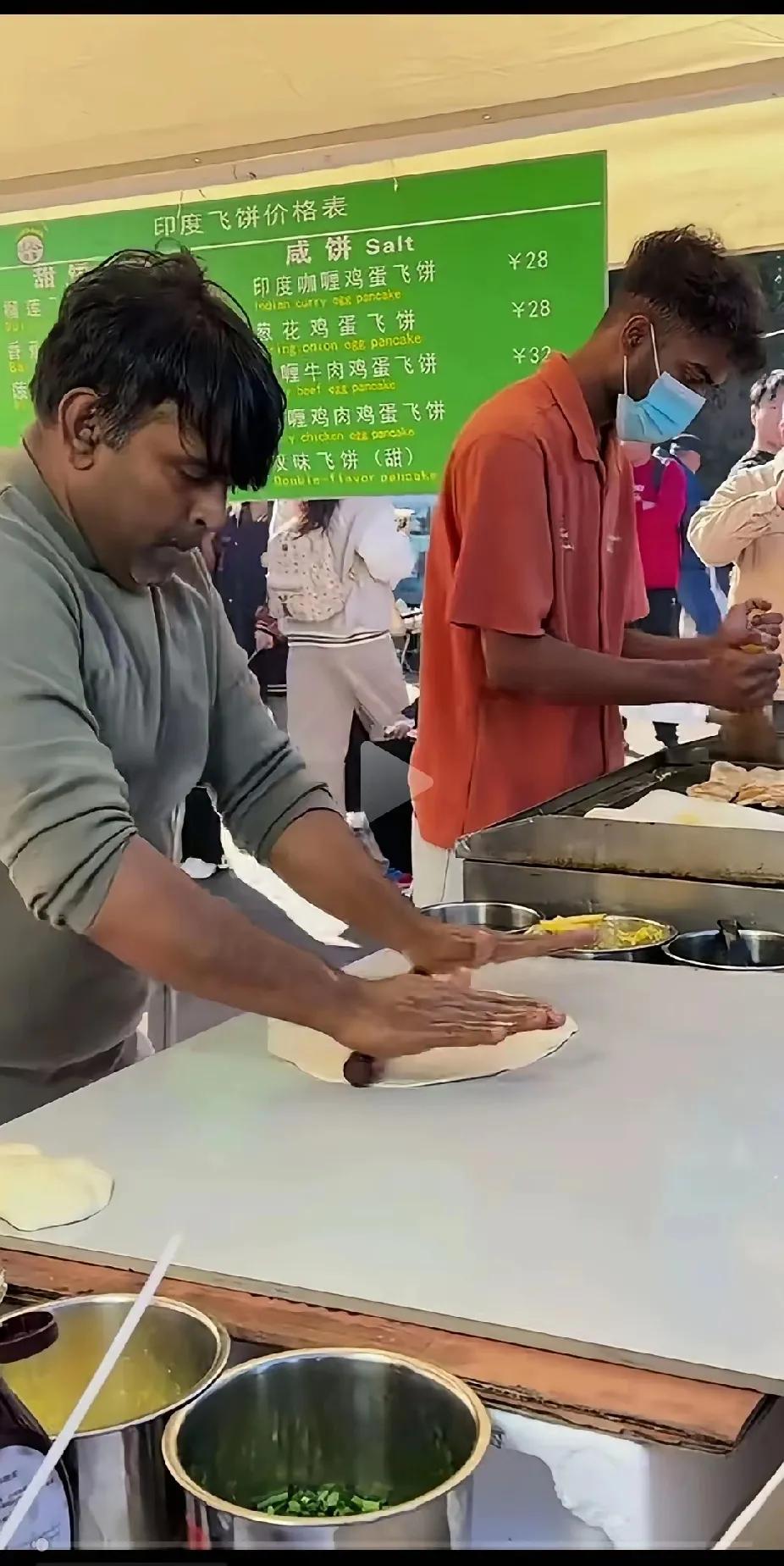 印度飞饼价高卫生忧,别把消费者当冤大头 家人们,印度人在中国卖飞饼这事儿,真是又气又离谱!随便一款飞饼就卖小30块,价格高得没天理。 它和咱的葱花饼本质差别不大,无非加了点咖喱、多了甩饼的噱头,材料也都是国产的,凭啥身价翻倍?更让人膈应的是卫生问题,黑乎乎的手直接制作,看着就没胃口。 咱中国好吃又干净的美食多的是,犯不着花冤枉钱。这飞饼想长久做下去,可得把价格调合理、把卫生搞到位,不然迟早被市场淘汰!
