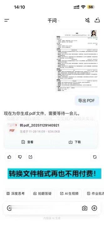 千问ai 这是直接把“全能工具箱”搬进APP了吧?金素相关文案一键生成,产品卖点精准提炼,连宣传海报配文、用户种草话术都能定制,养猫党做内容再也不用绞尽脑汁,创作效率直接拉满。终于有APP更新不像挤牙膏了