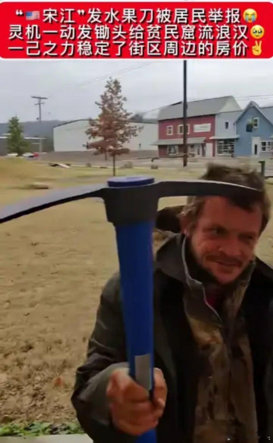 寰球镜头这是什么阿美带善人啊!给美国流浪汉发锄头?这锄头看着比水果刀都还有攻击力呀!海外新鲜事