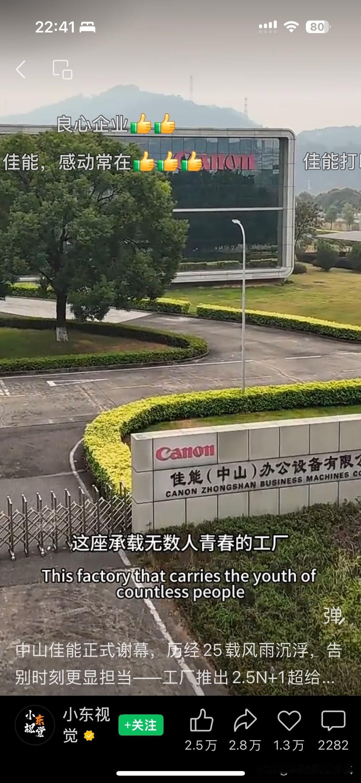 中山佳能正式谢幕,历经25载风雨沉浮,告别时刻更显担当——工厂推出2.5N+1超给力补偿方案,让每一位奋斗者都能体面转身、奔赴新程! 那家某度比起来,整天在网上删帖,的确卑劣的很。