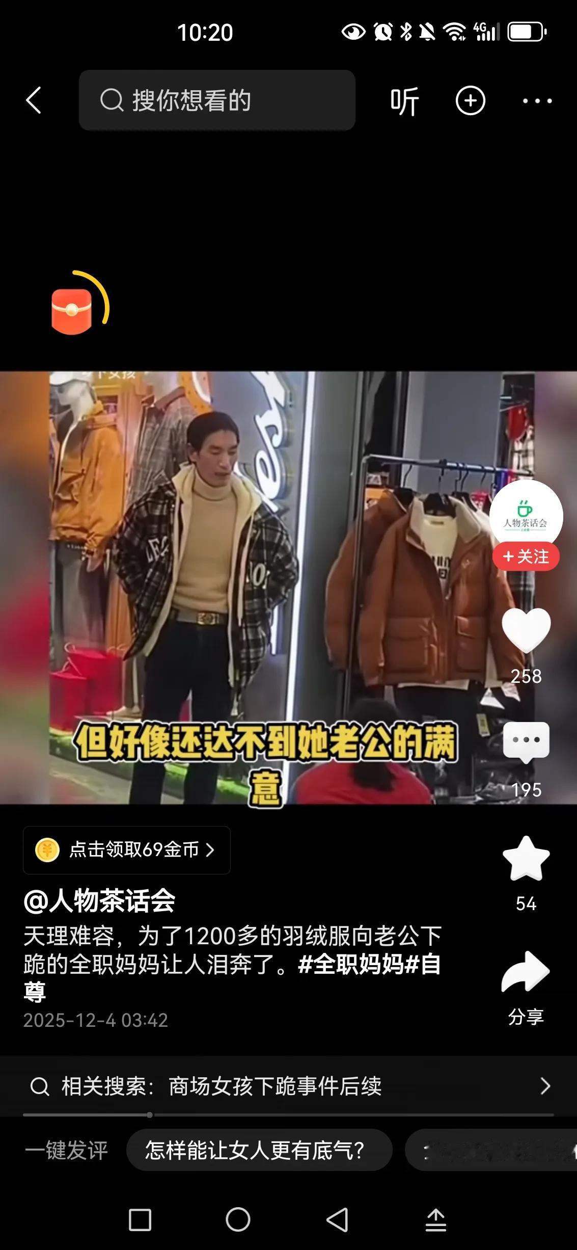 羽绒服不买不行吗? 为啥给他下跪?看他那个死样子,双手插兜,人模狗样的,也配有有老婆,有家庭。 这女人一看生活中就有很多委屈,平时鸡毛蒜皮的事,没少受气。干嘛非得和他过,离了吧,女人还得爱自己。 这回这男人彻底火了,看看以后二婚还能不能找到老婆。