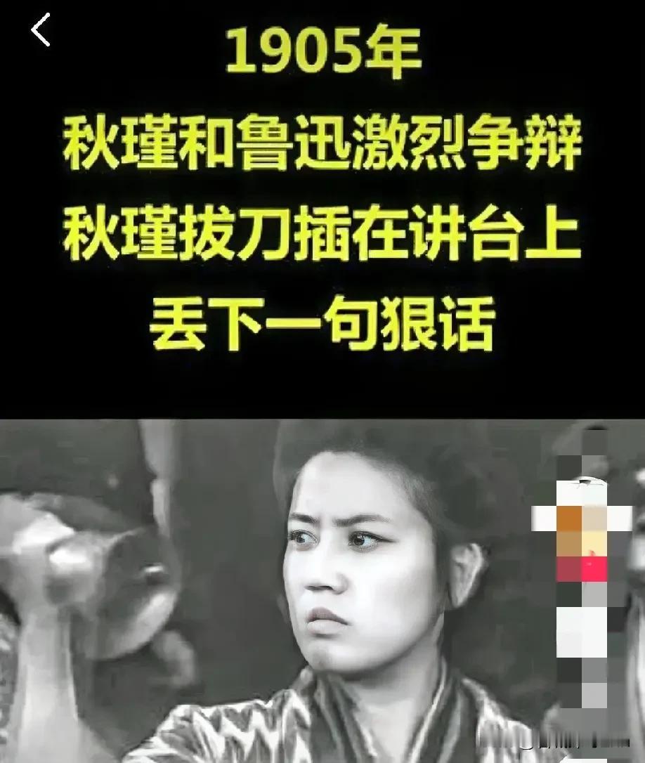 1905年,在日本,30岁的秋瑾和24岁的鲁迅发生激烈争辩,不料,秋瑾从靴筒里拔出倭刀,往讲台上“咚”地一插,当即丢下一句狠话,听到这句话后,一半人热血沸腾,一半人脸色煞白。 这场争执不是偶然的意气用事,背后藏着那个年代革命者最痛的撕裂。前一天,陈天华刚刚为抗议日本《清国留学生取缔规则》蹈海自尽,用生命控诉外界对国人“放纵卑劣”的诋毁。 作为追悼会的召集人,秋瑾的情绪早已被同胞的鲜血点燃,她提出全体留学生立刻回国,用集体行动对抗不公。 鲁迅和许寿裳等人却坚决反对。他们认为,留学机会来之不易,贸然回国只会中断学业,反而让革命失去未来的力量。 双方的声音越来越大,原本肃穆的会场变成了争论的漩涡。秋瑾的怒火在那一刻彻底爆发,佩刀出鞘的声响盖过了所有嘈杂,刀尖刺入木质讲台的震动让全场瞬间死寂。 “投降满虏,卖友求荣,欺压汉人,吃我一刀!”这句话像惊雷炸在众人耳边。热血沸腾的人,是被这份决绝戳中了内心的悲愤,在清廷腐朽、外侮不断的年月里,太需要这样敢亮剑的勇气。 脸色煞白的人,有的是被刀光震慑,有的则是对这种极端方式感到不安,他们更倾向于隐忍蓄力,而非即刻决裂。 秋瑾的刚烈从来不是一时冲动。此前周氏兄弟醉酒后说“革命是男人的事”,她就曾踹门而入,将匕首插在桌上怒斥,当场吓醒了两人的酒意。 她的激烈里,藏着对同胞麻木的焦虑,更藏着对革命“需流血才会成功”的执念。这种执念让她无法接受任何“拖延”,在她看来,退缩就是对牺牲者的背叛。 鲁迅的反对并非怯懦。作为官派留学生,他背负着家庭的期望,更看清了革命的复杂——仅凭一腔热血未必能撼动根深蒂固的黑暗。后来光复会曾交给鲁迅暗杀任务,他因顾虑母亲赡养而犹豫,这并非贪生,而是对“无谓牺牲”的警惕。他始终认为,保存力量、唤醒民众的思想,或许比即刻赴死更长久。 这场争执没有赢家,却划出了两条同样伟大的革命道路。秋瑾回国后立刻投身武装起义,在大通学堂联络会党、组建光复军,即便得知徐锡麟起义失败,仍拒绝撤离,最终在轩亭口从容就义,用32岁的生命践行了“为国牺牲敢惜身”的誓言。她的血真的没有白流,四年后辛亥革命成功,印证了她“革命要流血才会成功”的预判。 鲁迅终究没有忘记那位拔刀怒斥的同乡。秋瑾牺牲两年后,他回国任教,多次到坟前凭吊;得知杀害秋瑾的凶手章介眉未受惩处,他立刻联络友人向当局抗议。 十二年后,他在《药》里塑造了革命者夏瑜,“夏秋相对,瑜瑾辉映”,用文字为她立起永恒的纪念碑。他曾痛心“秋瑾是被掌声拍死的”,这份痛心藏着对民众狂热的警惕,更藏着对先烈牺牲的珍视。 两人从未真正对立。秋瑾是燃尽自己照亮黑暗的火种,用决绝的牺牲刺痛麻木的社会;鲁迅是手持笔墨的战士,用冷峻的文字解剖民族的病根。一个以血醒世,一个以笔救国,看似迥异的道路,都朝着“光复中华”的同一目标延伸。他们的分歧,不过是革命者对“如何救国”的不同思考,没有高低之分,都是那个黑暗年代里最珍贵的觉醒。 秋瑾的刀与鲁迅的笔,都成为了民族精神的基石。刀光里藏着不屈的骨气,笔墨中含着深沉的担当,共同撑起了近代中国的觉醒之路。他们用不同的方式证明,真正的革命,从来不是只有一种模样。 各位读者你们怎么看?欢迎在评论区讨论。