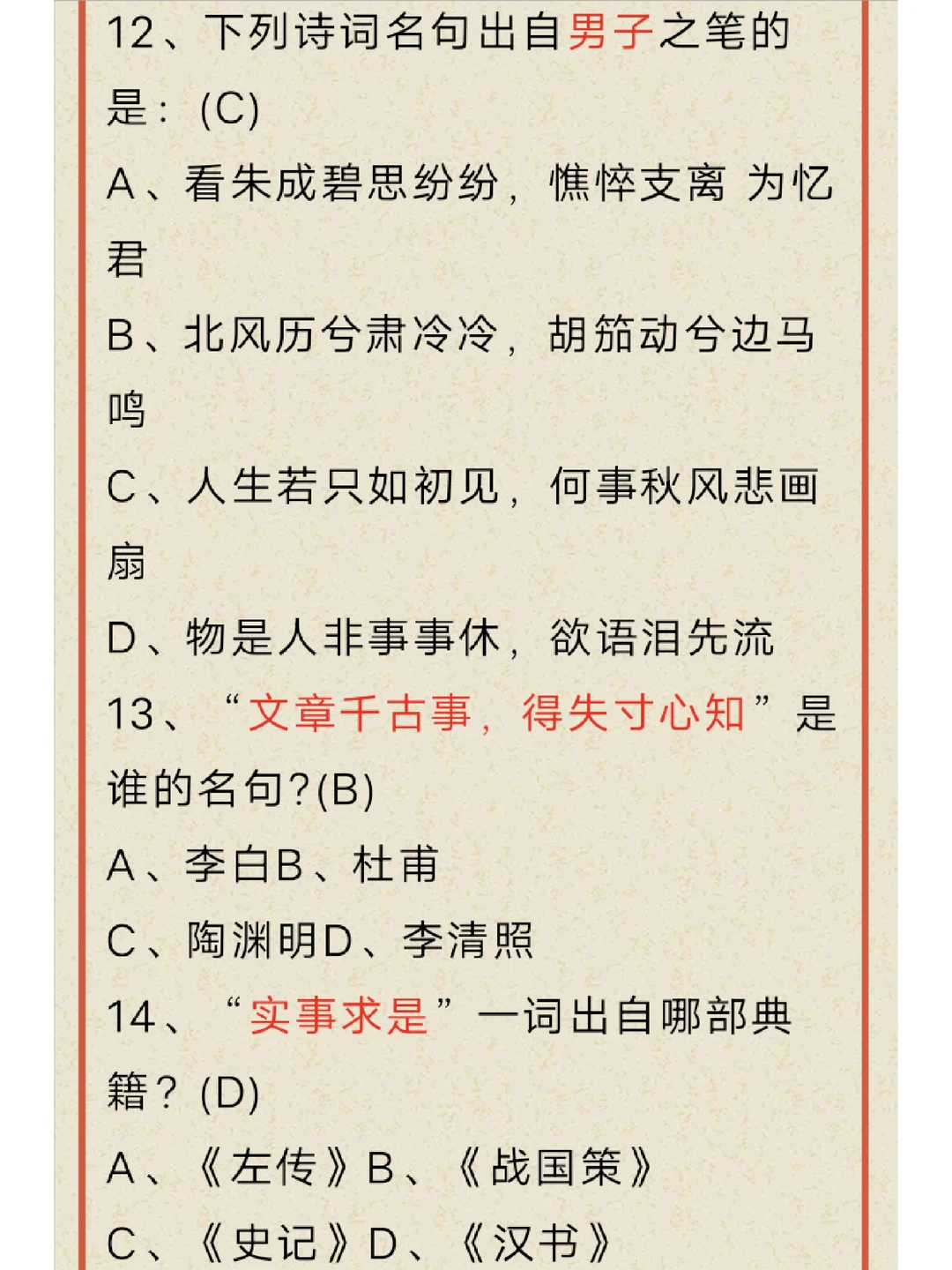 文化常识十二弹,题目有点难