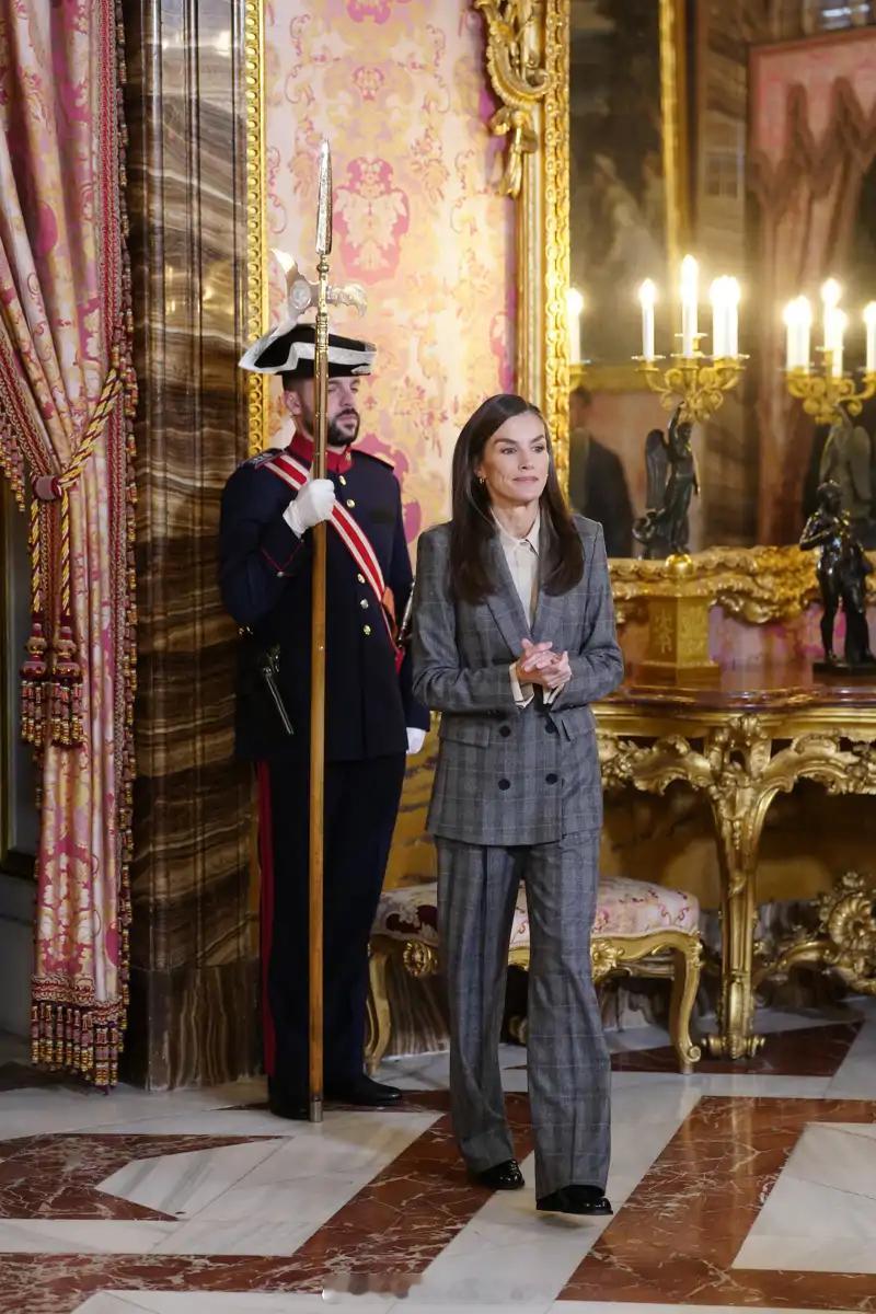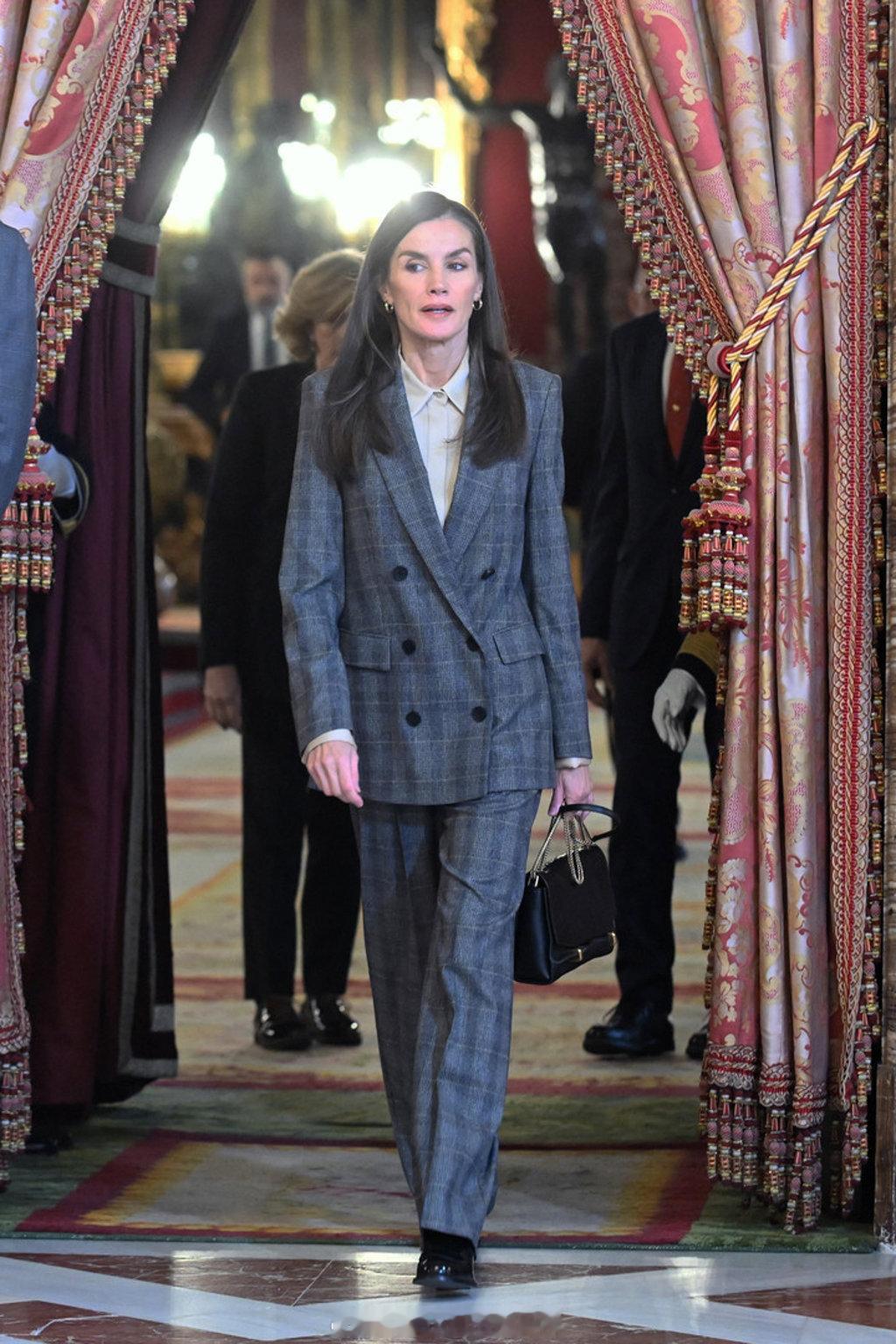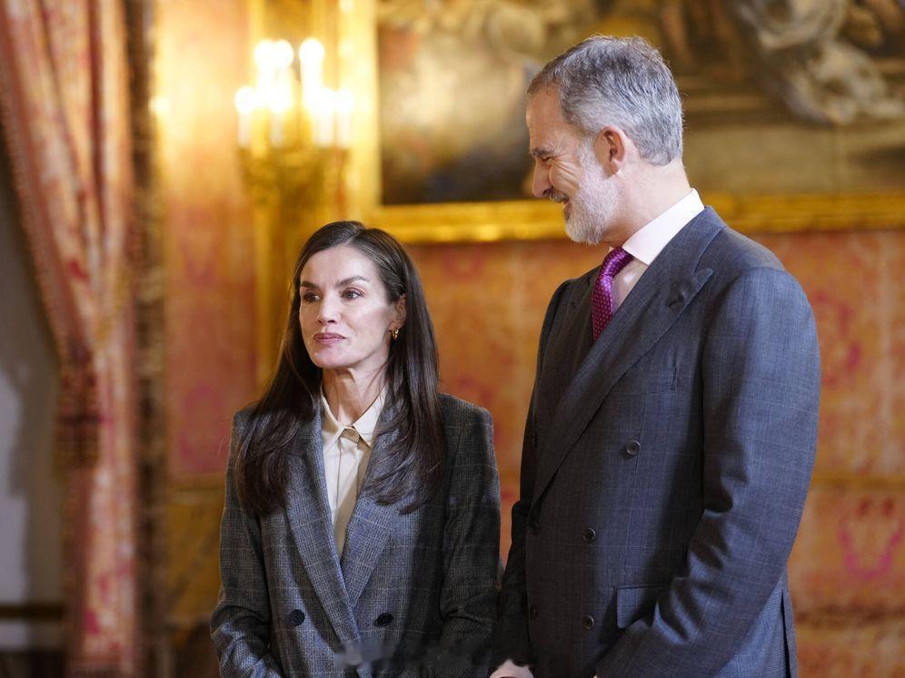 西班牙王室 12月4日,费莱出席赫罗纳公主基金会理事会会议,年底了,回顾过去展望未来啥的~莱后灰色格纹套装来自hugo boss ,上次穿还是在21年底。