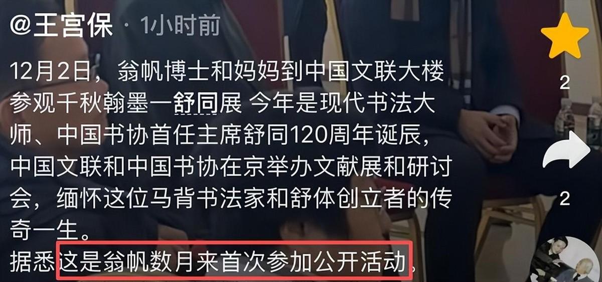 103岁杨振宁走后,49岁翁帆最新露面!罕见携妈妈一起合体看展,这也是她近两个月