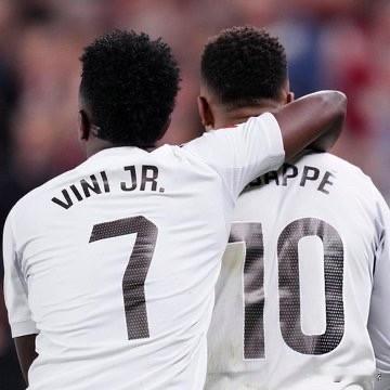 皇家马德里现役球员历史射手榜: 1 - 维尼修斯:342场111球 2 - 姆巴佩:79场69球 3 - 罗德里戈:286场68球 4 - 贝林厄姆:115场42球 5 - 巴尔韦德:342场32球
