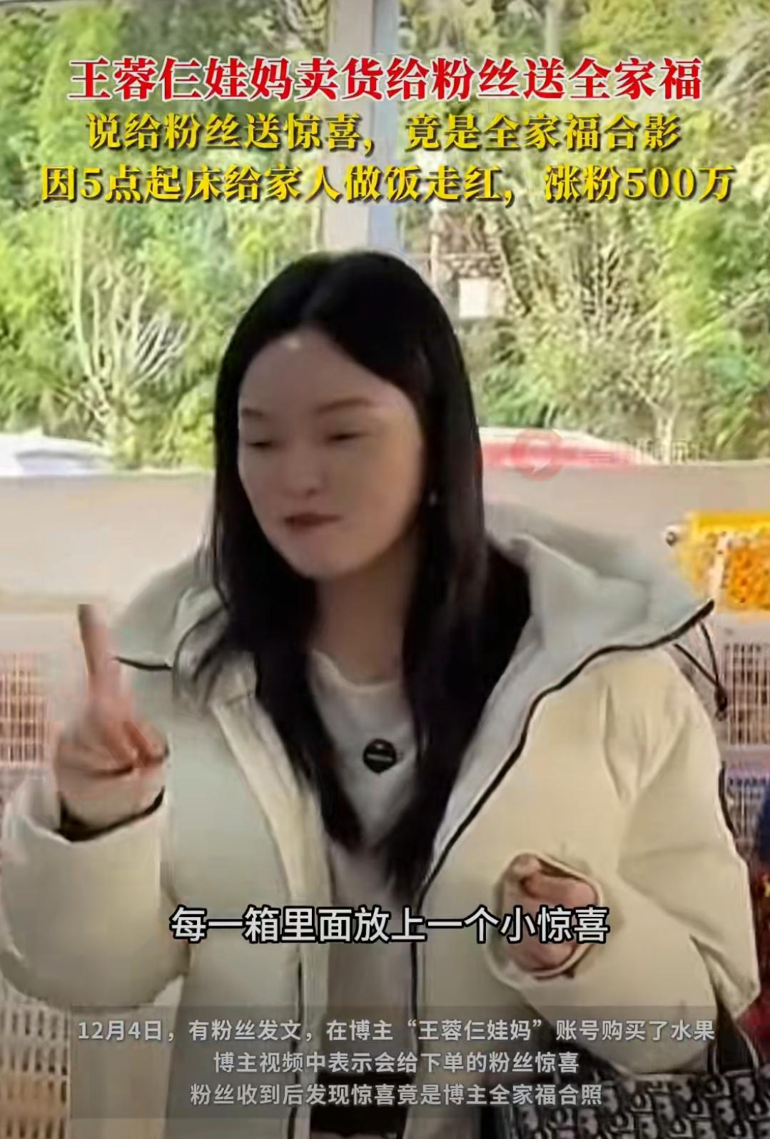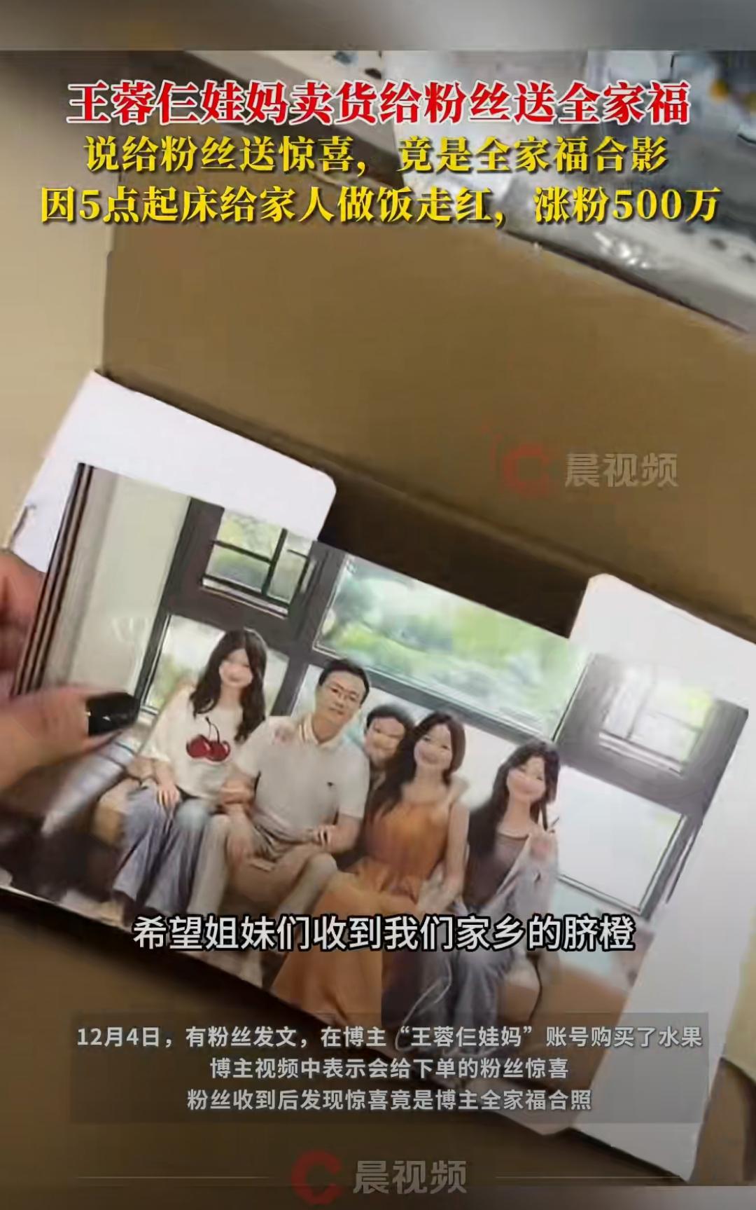家人们谁懂啊!5点起床给全家做饭的网红王蓉,卖货居然藏惊喜——粉丝买水果,收到的不仅有甜果,还有她全家亲笔签名全家福! 这波操作比她做的红烧排骨还暖心!564万粉的“互联网妈妈”果然宠粉无套路,不搞虚的直接送独家合照,粉丝狂喜:买水果送“家人认证”,这波血赚! 只能说王蓉把烟火气宠粉玩明白了,建议其他博主卷起来,这种实在惊喜谁不爱!
