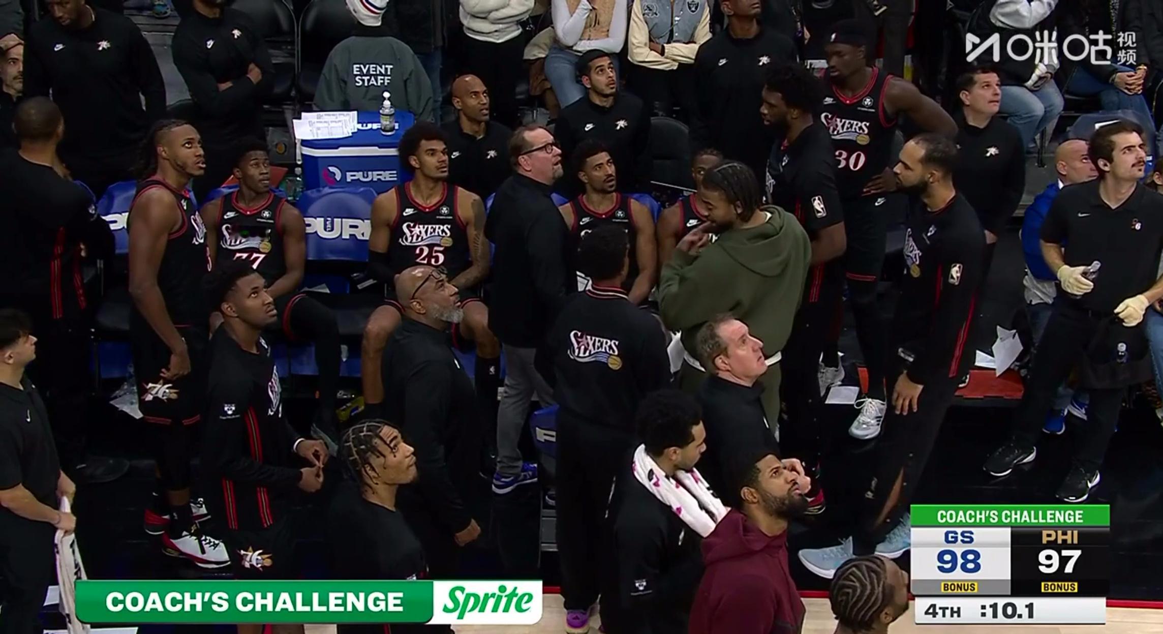 看啥呢,又不上去帮忙!费城76人76人vs勇士