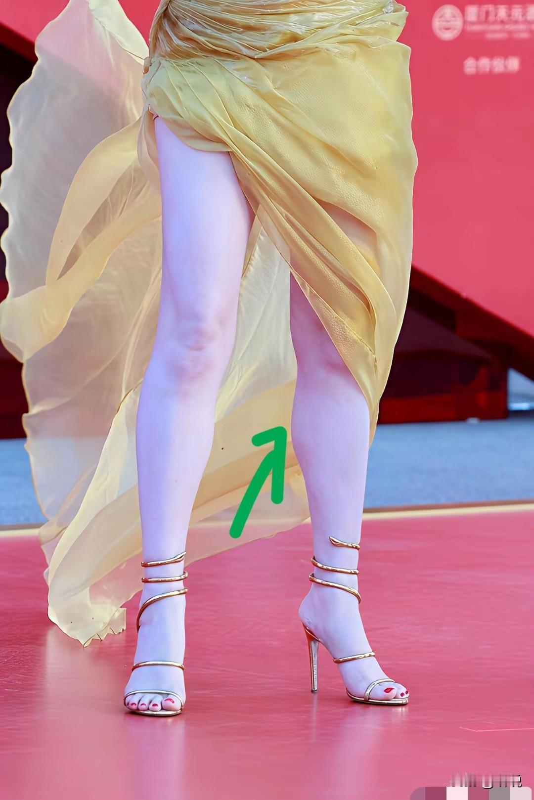 以为女明星都是筷子腿,没想到还是有这种有小腿肚子的正常腿形