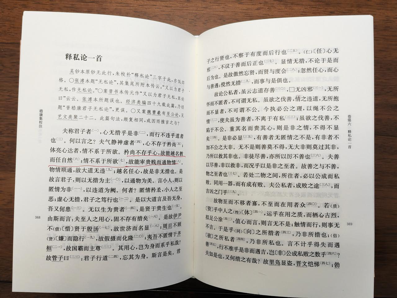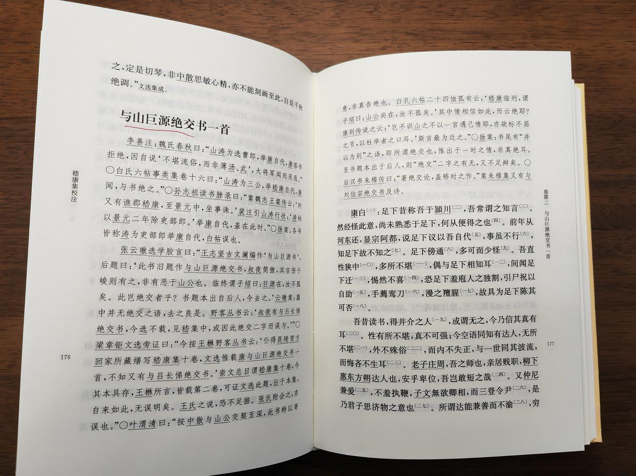 才子寿浅,哲人命蹇,嵇康两条全占,年仅四十即殁,冤到家了,但这不能否认嵇康的才气之高和个性之强。 “竹林七贤”中,嵇康是精神领袖,他不仅对“竹林名士”影响深入,对后世文人影响也深,他那一句“越名教而任自然”“审贵贱而通物情”成了知识分子挣脱精神枷锁的纲领和宣言。 他的思想大都集中在《释私论》和《与山巨源绝交书》中,《晋书》本传记载了《释私论》,不过只有一部分,内容不全,于是买了这本《嵇康集校注》。