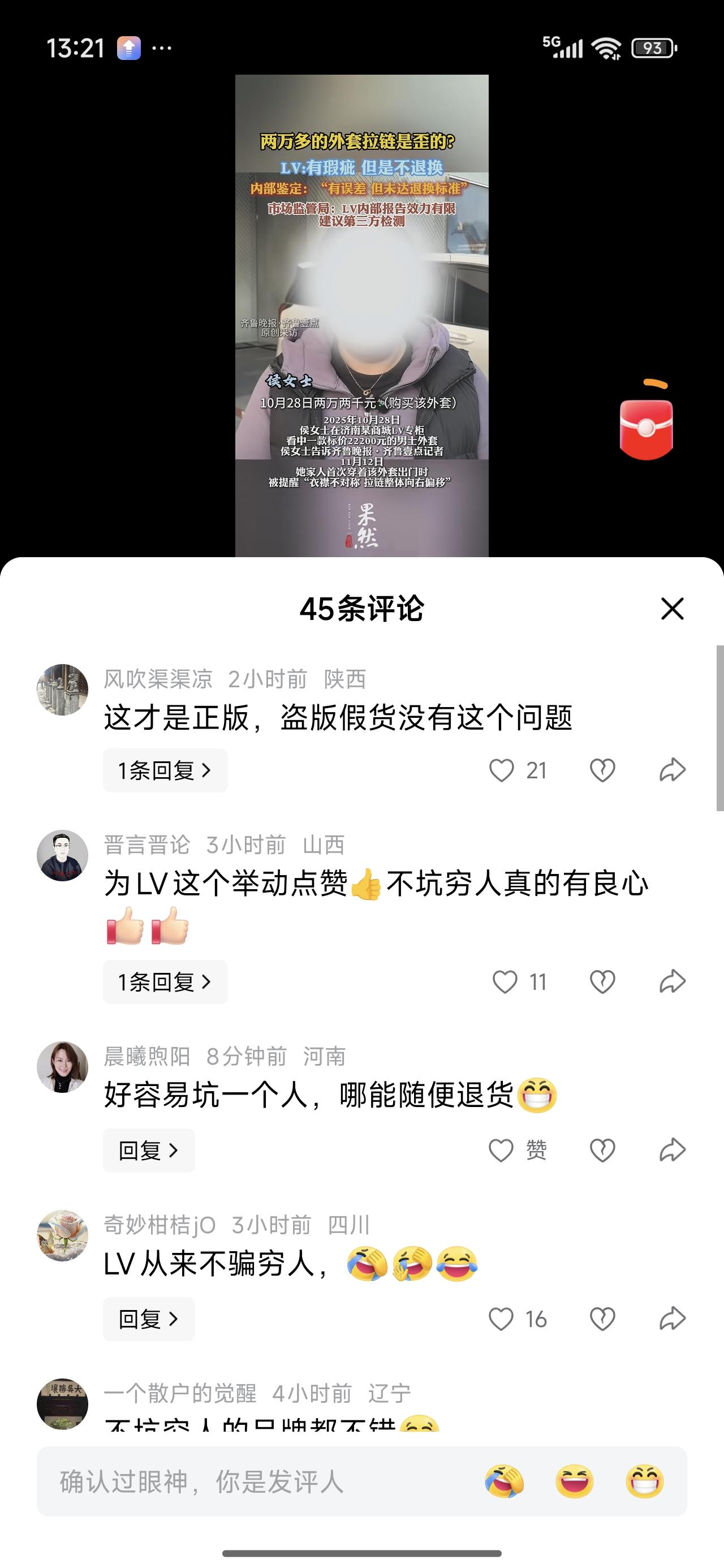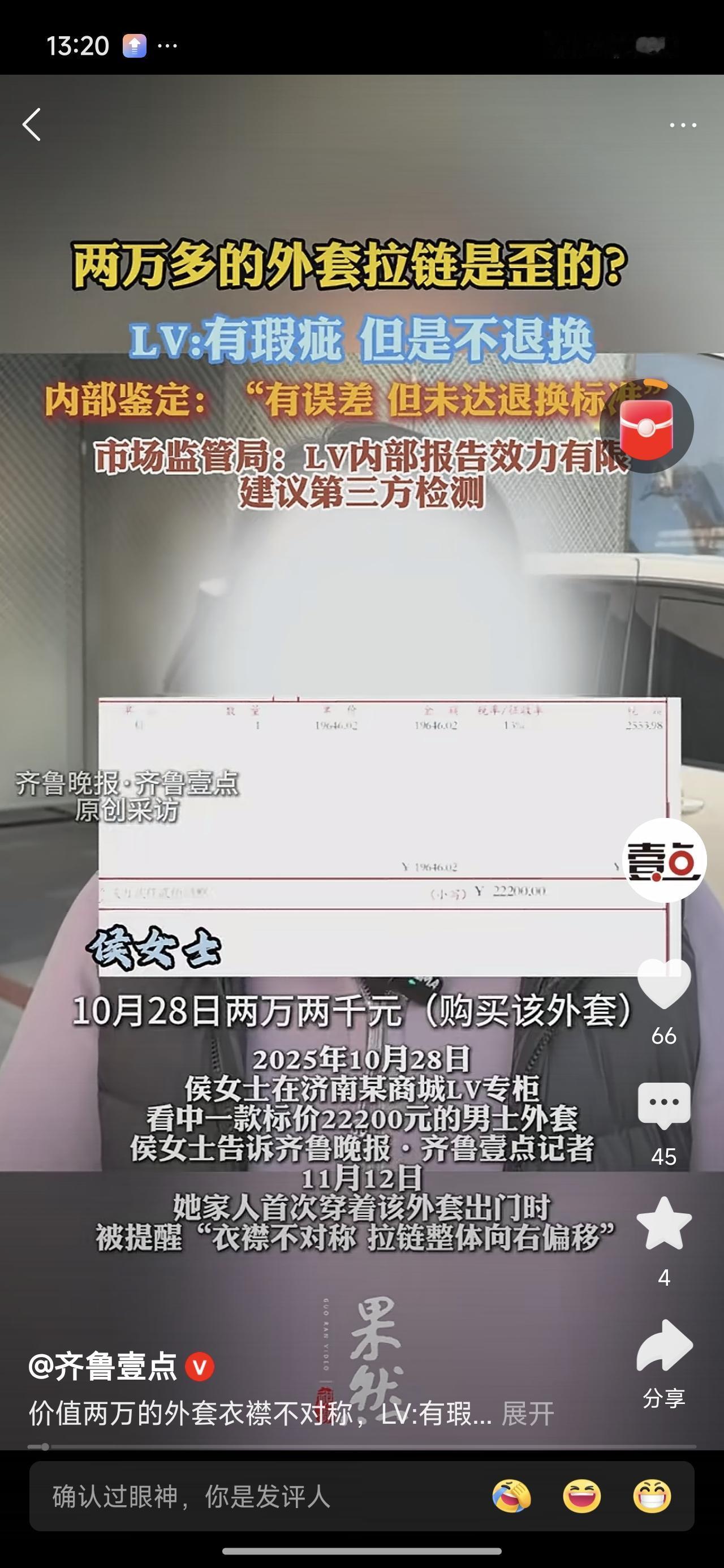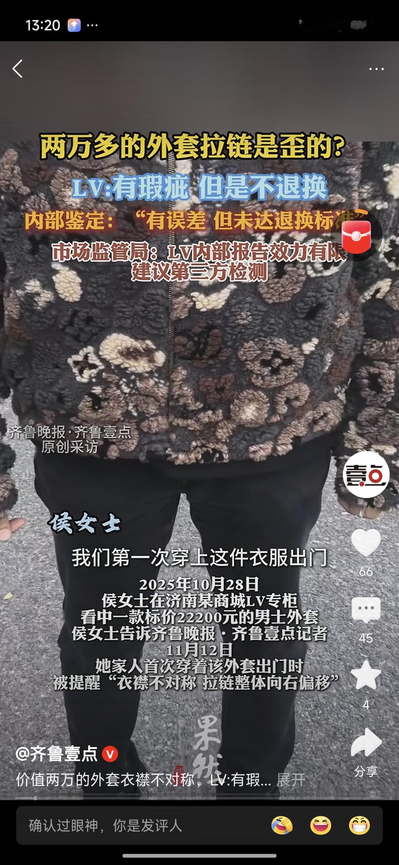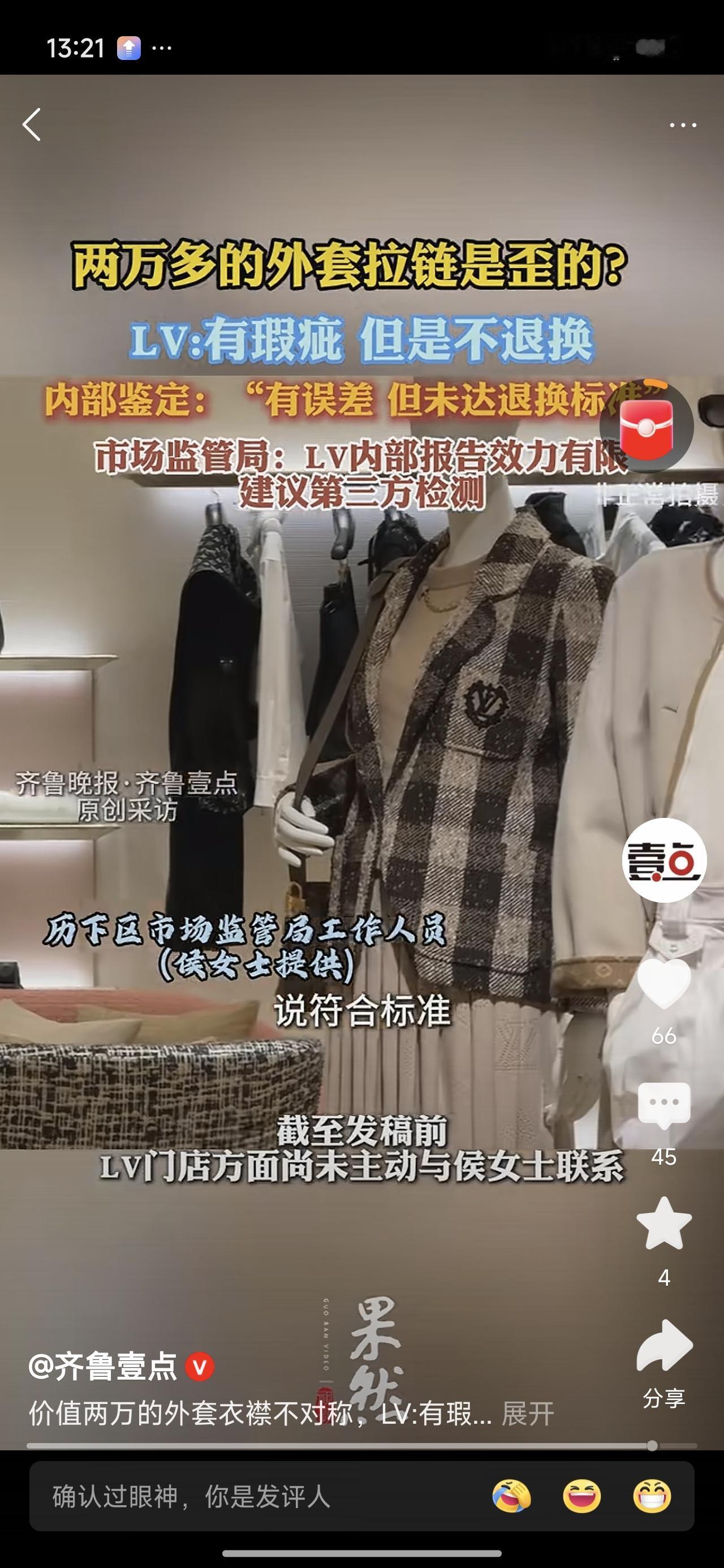 两万八买个衣服穿,拉链是偏的?经过检测,误差在正常值范围内,符合标准。不退不换不