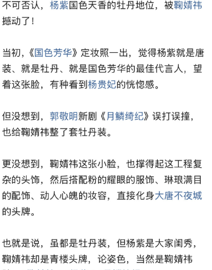 不可否认,杨紫国色天香的牡丹地位,被鞠婧祎撼动了!