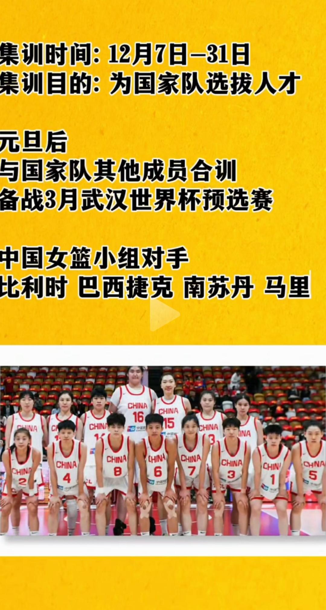 网传消息, 宫指导的国家女篮今年再特训, 以备战2026年3月份的世预赛, 名单
