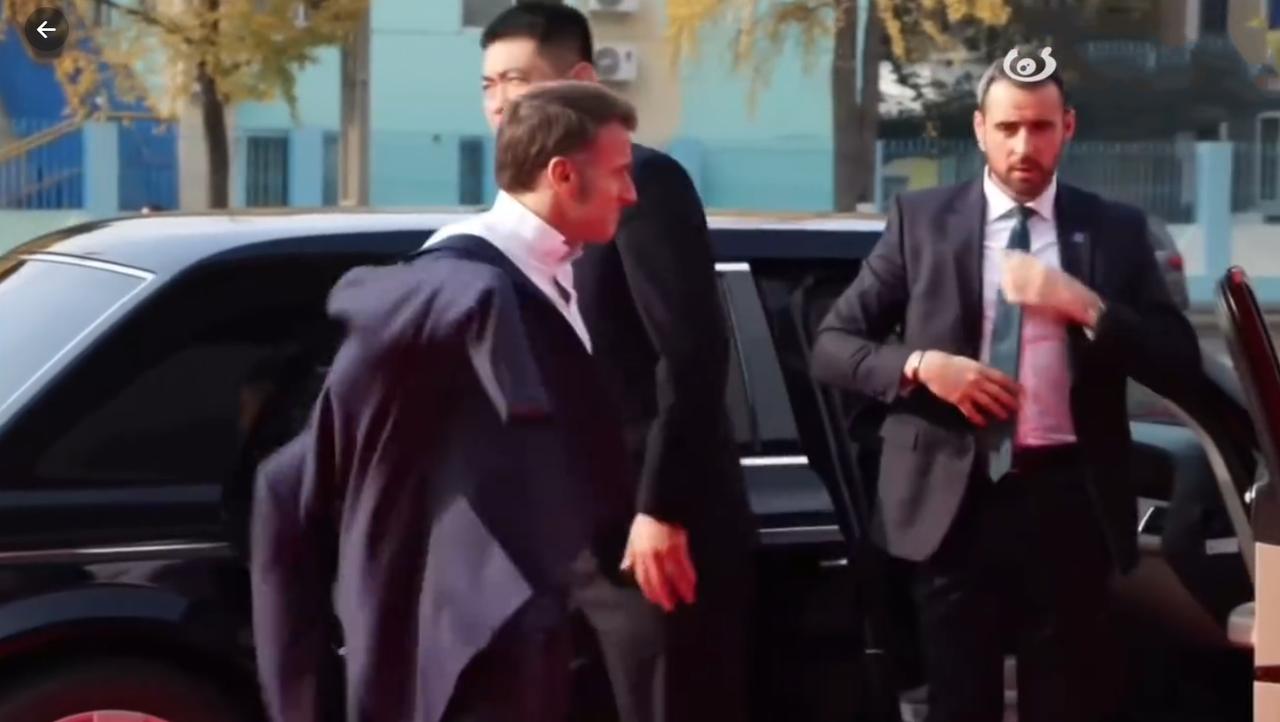 12月5日马克龙抵达四川大学,他从车上下来穿着一件白衬衫,手里拿着一件西服外套,然后面对镜头穿衣服,看起来状态超好! 让人没想到的是总统先生毫无总统包袱,因为他并没有在车里把衣服穿好,而是下车后才穿衣服,而且全程轻松自由,并没有把自己当外人。 这样的马克龙真的好接地气,一下车都乐呵呵的笑容灿烂,还和为他开车门的工作人员说话,等到穿好衣服好才去与四川大学的接待人员握手打招呼。