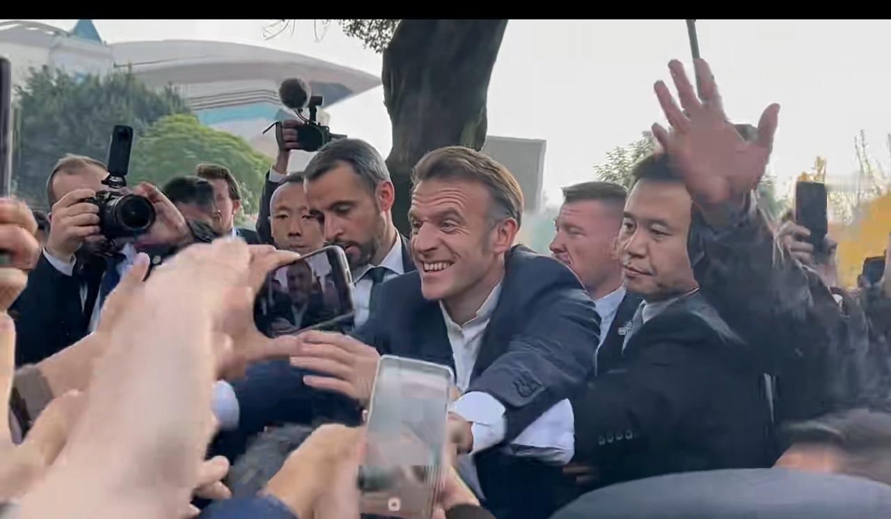这老兄马克龙,估计在自己国家,都没这么多人给他热情拍照! 刚刚传出消息!马克龙抵达四川大学,被热情民众“包围”,全靠保镖挤出一条路! 马总出场远超大牌明星,群众的热情彻底点燃了马总的,开心的向大家招手示意,并且向群众握手,虽然被报表阻拦,还是能看出他不虚此行,中国行对于马总来说太满意了! 中国人不一定崇洋媚外,但一定爱凑热闹,别人打架凑上去看被砍伤者见多了。[捂脸]