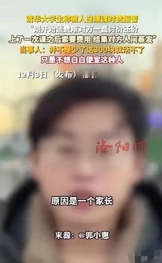 “清华男生报警追300块家教费:我不是缺钱,是不想惯坏这个世界。” 周六下午,