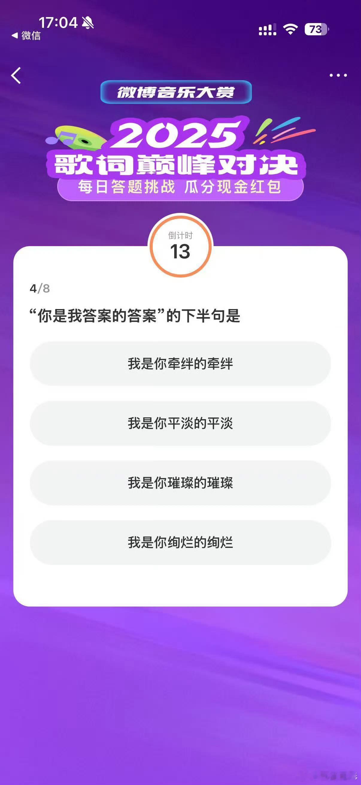 武艺考了38分 这个小武艺出现就有笑料,今日,网友发现武艺也在微博音乐大赏 歌词巅峰对决偷偷答题,小武艺怎么答自己的题考了38分,大家都考了多少呀,想要努力超过小武艺!!万物皆可音乐