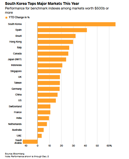 彭博:韩国年轻人放弃了购房梦,疯狂涌入股市海外新鲜事 据彭博报道,随着房地产市场过热,韩国民众正以疯狂转向股市。据韩国金融投资协会数据,截至11月20日,韩国人用借贷资金投资本国股票的规模,飙升至历史最高的26.8万亿韩元(约180亿美元)。来自韩国银行的数据显示,韩国人持有的海外证券总额也在第三季度末达到创纪录的1.21万亿美元,政府正试图改变民众,特别是年轻人的投资行为,鼓励他们购买股票,远离泡沫化的房地产市场。首尔的住房成本已经超过了纽约、东京等热门市场,购房负担不断加重。为海外华人提供有价值的信息与分析,更多内容和全文可在蓝天、电报、x查找causmoney,或直接谷歌搜索过去十年,首尔房价与工人收入的比值几乎翻了一倍。从某种程度上看,这一政策起到了作用:大量新散户的涌入推动了韩国KOSPI指数今年大涨68%,在全球主要市场中表现居首。然而,首都地区的房价依然高烧不退,使得韩国银行对金融稳定的风险保持警惕,即便面对美国关税上调对出口型经济的压力,货币政策仍未松动。“房价涨得太快,负担压力越来越大,”法国外贸银行驻香港经济学家吴卓殷表示。这让年轻人更难买房、组建家庭。“随着经济失衡加剧,韩国银行现在将金融稳定置于增长政策之上,”他补充说,“这种失衡引发了普遍的不满与焦虑。”韩国人涌入股市,标志着财富结构出现重大转变,也对政策制定者发出警示。政府在遏制首尔失控房价的努力中陷入僵局,越来越多的年轻人放弃购房梦想,转而投向股市。在韩国,与世界其他许多国家一样,拥有住房被视为人生的主要里程碑之一。但如今的转向暴露出日益加深的不平等:房地产仍遥不可及,家庭风险偏好上升,住房负担的挫败感正在重构民众的财务行为。散户对杠杆产品的狂热已经引发监管部门出手,从12月15日起将收紧对高风险投资产品的购买规定。对很多韩国人来说,选择已经很清楚。43岁的首尔吉他店店员柳永勋表示,自从今年初结婚以来,他和妻子只要有闲钱就会买股票。“房价高得连想都不敢想,”他说,“攒钱买房在这里根本不现实。”虽然多个国家的热房市都让购房者受挫,但首尔的房价涨幅之迅猛和持续性依然非常显眼。根据韩国国土交通部的数据,即便使用最新统计数据,差距依然明显:2024年,首尔一个家庭需将全部可支配收入存13.9年,才能负担一套住房。相比之下,依据2022年数据,纽约市的家庭需要存9.7年。尽管统计时间不同,但数据表明,首尔房价的可负担性远逊于全球主要城市,凸显问题的严重性。另一个结构性变化,也正在削弱韩国人拥有房产的能力。韩国传统的“全租”制度(租户以一次性支付大额押金代替月租)需求正在下降。曾被视为迈向购房之路的过渡方式,如今因频繁爆出欺诈案件而丧失信誉,房东与租客之间的信任正在瓦解。房价上升与传统制度的衰退,正在将更多年轻人推向其他投资领域。工程师都炳贤(35岁)住在首尔周边的京畿道。他表示,放弃全租让他得以更积极地进军股市。“我妻子理解并支持这个决定,”他说,“我负担不起首尔核心地段,比如江南的房产,因此,把重心放在投资世界顶级公司的股票上,更有意义。”总统李在明自6月上任以来,一直承诺将出台有利投资者的政策,甚至罕见地提出要将KOSPI指数推升至5000点。这一罕见的政治表态,加上AI热潮的带动,使得KOSPI今年成为全球表现最强的主要股指。与此同时,李在明政府也宣布了一系列遏制首尔房地产投机的措施。然而,尽管政府多次出手,首尔公寓价格已连续上涨44周,涨势未见缓解,这也引发国家高层的警觉。“我原来住在全租房,但今年开咖啡馆时需要资金,于是改成月租了,”38岁的首尔小企业主金大完说,他现在每月支付60万韩元租金。他还表示,自己每个月都会买一些标普500的股票。韩国银行行长李昌镛对彭博社表示,近期首尔房价涨幅“远超预期”,政府需要评估各项措施的执行效果,而当前政策仍将重点放在金融稳定上。他还表示,年轻人大举投资海外股市也令他感到担忧。李在明总统也称房地产市场是“一触即破的泡沫”。自6月上任并承诺改善住房可负担性以来,他已出台多项打击投机行为的措施,尽管目前效果仍有限。“政府的房产政策压垮了年轻人的梦想,”27岁的首尔市民孙明勋说。“他们想打击炒房,却反而封死了年轻人的住房选择。”