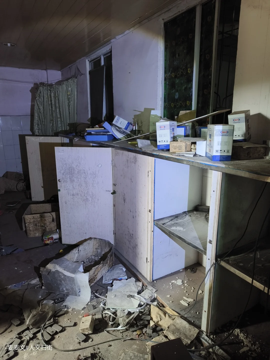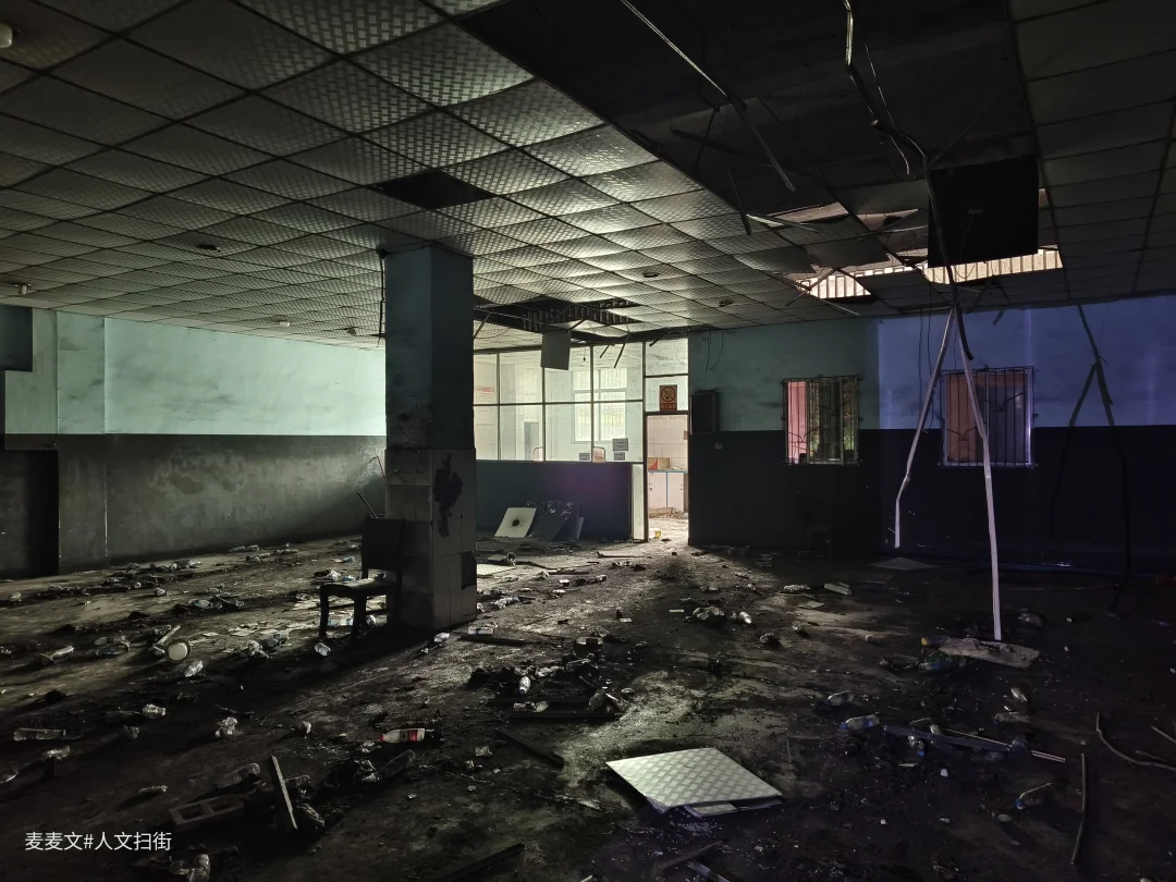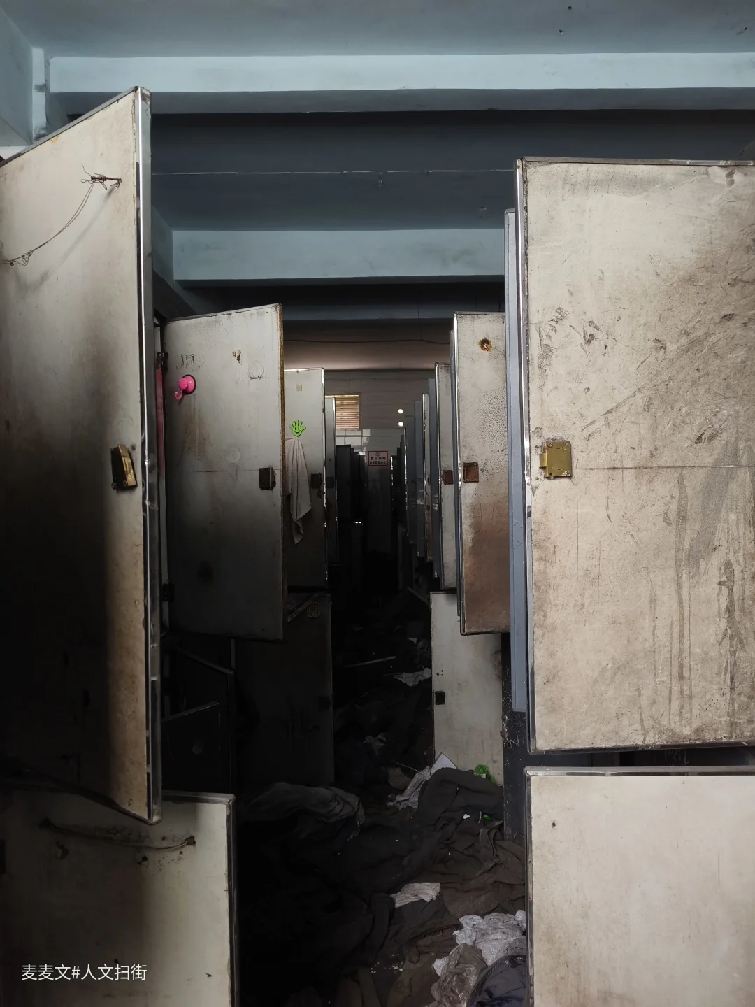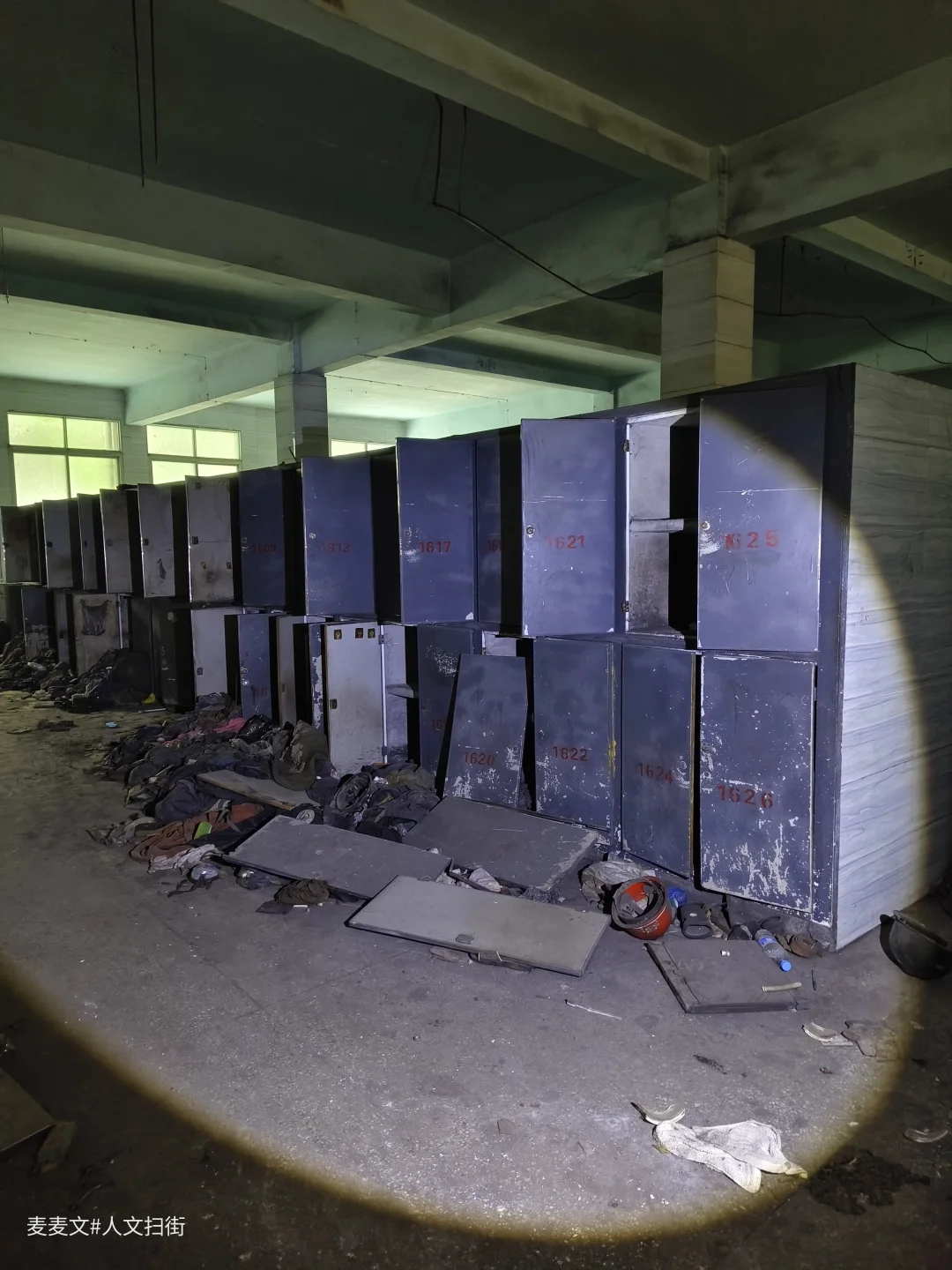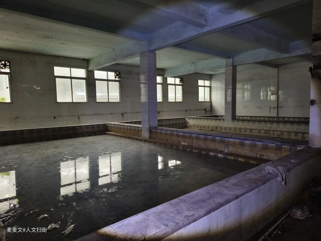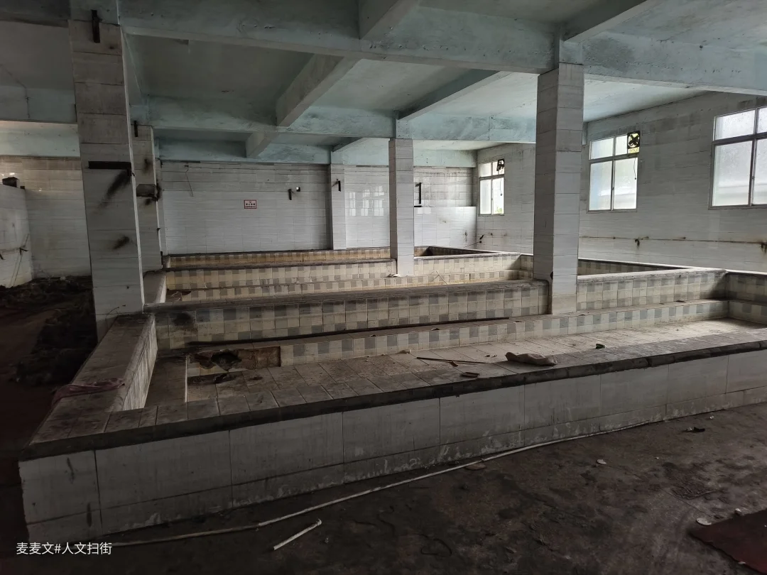 在重庆合川一矿区又偶遇一座废弃职工浴室,其内部高大的空间让人有些恍惚。地面是那种常见的防滑瓷砖,部分已经破碎,缝隙里长出了些不知名的小草。墙壁上的水渍斑驳陆离,像是岁月留下的独特印记。天花板上,吊着几盏早已不亮的灯,昏暗的光线给整个澡堂增添了几分神秘的氛围。泡澡池的瓷砖脱落了不少,露出里面的水泥。曾经这里定是热气腾腾,充满欢声笑语,如今只剩下一片寂静。它见证着时光的流转,承载着无数矿工的回忆。