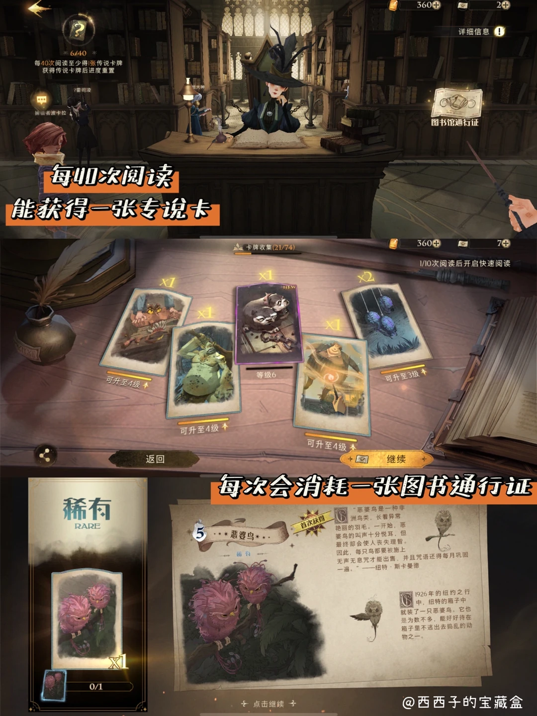 ✅卡牌收集,可以去学习魔咒,每40次就能获得1张传说卡牌,还能获得不少稀有卡牌,🎉也是我主要获取卡牌的地方!