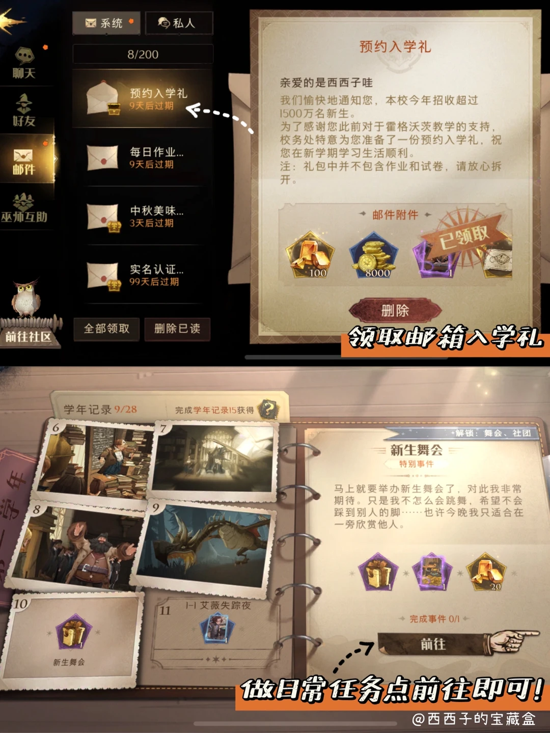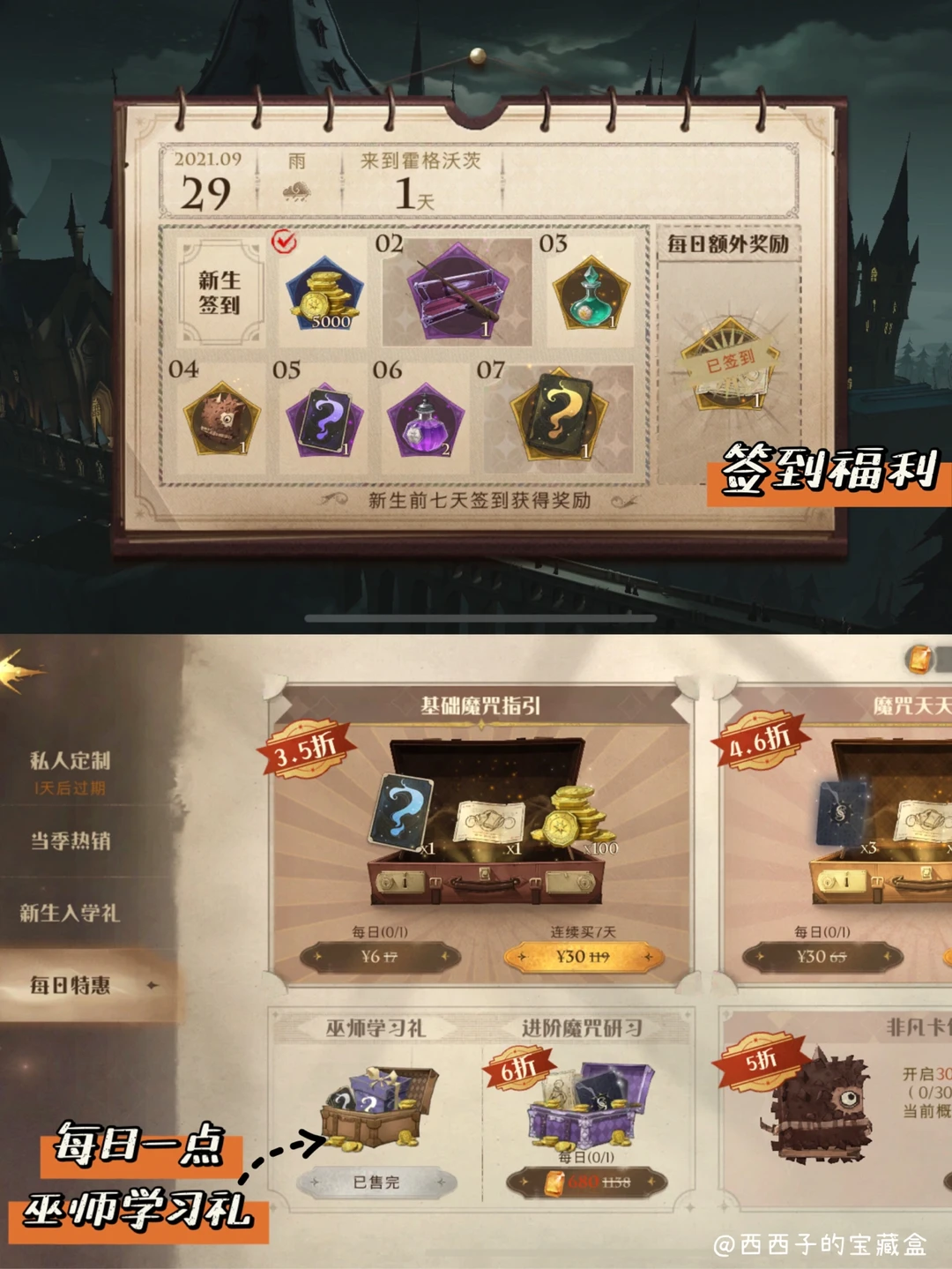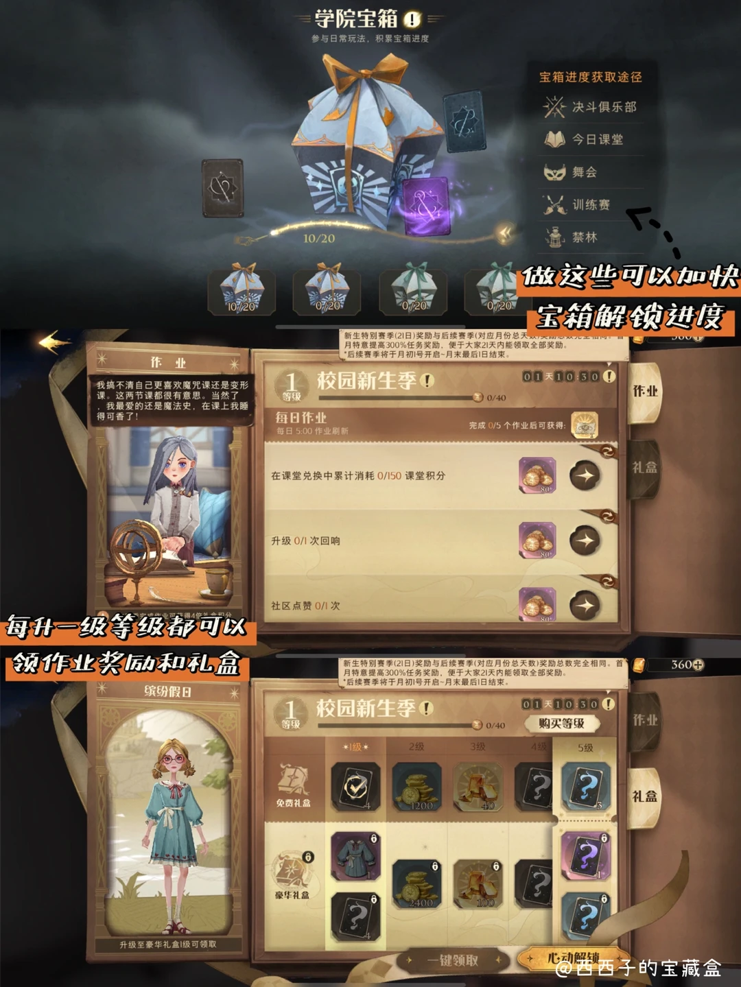 ✅魔法教室每天去上一堂课,除了可以学魔法解锁学院的宝箱,还能获课堂积分和💰金bi,