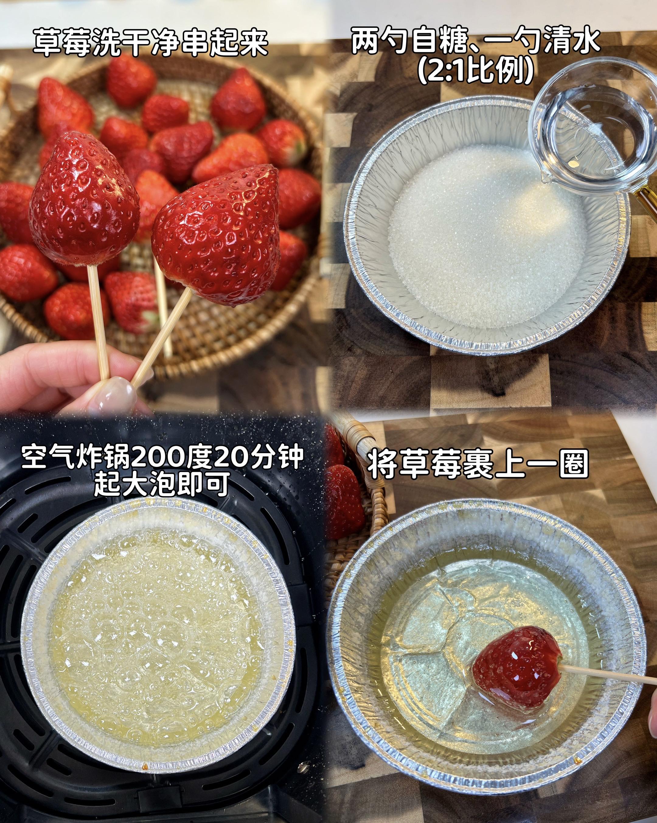 没想到空气炸锅做的草莓糖葫芦 ,香甜酥脆巨好吃,这个冬天❄️一定要给你爱的人做起来~赶紧艾特对象动手吧!