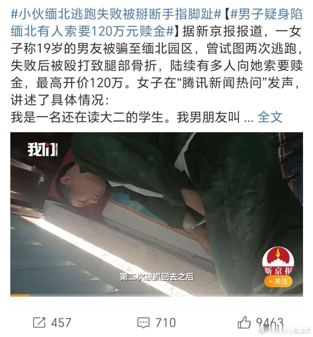 小伙缅北逃跑失败被掰断手指脚趾但凡薪资待遇和自身能力、行业常态严重不符的工作,尤其是境外岗位,一定要多留个心眼,别为了贪念把自己送进险境。