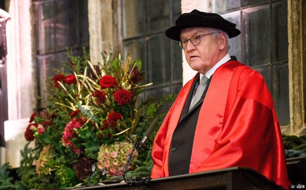 英国王室 🇬🇧🇩🇪12月5日,德国总统弗兰克-瓦尔特·施泰因迈尔阁下和夫人埃尔克·比登本德国事访问第3️⃣天行程。德国总统施泰因迈尔被牛津大学授予荣誉博士学位。总统夫妇还会见了牛津德国学会(Oxford German Society)的学生,并向他们展示了学术研究的实例。世界各国王室新闻牛津大学 来自德国驻英国大使馆照片。