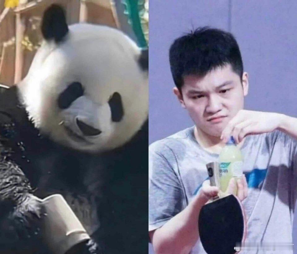 樊振东与大熊猫适配度拉满是百分百复刻是东复刻🐼or熊猫复刻东呢