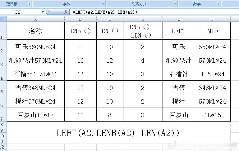 Excel拆分单元格成汉字和数字两列,lenb-len得出汉字个数,再用left和mid截取数字和汉字成两列