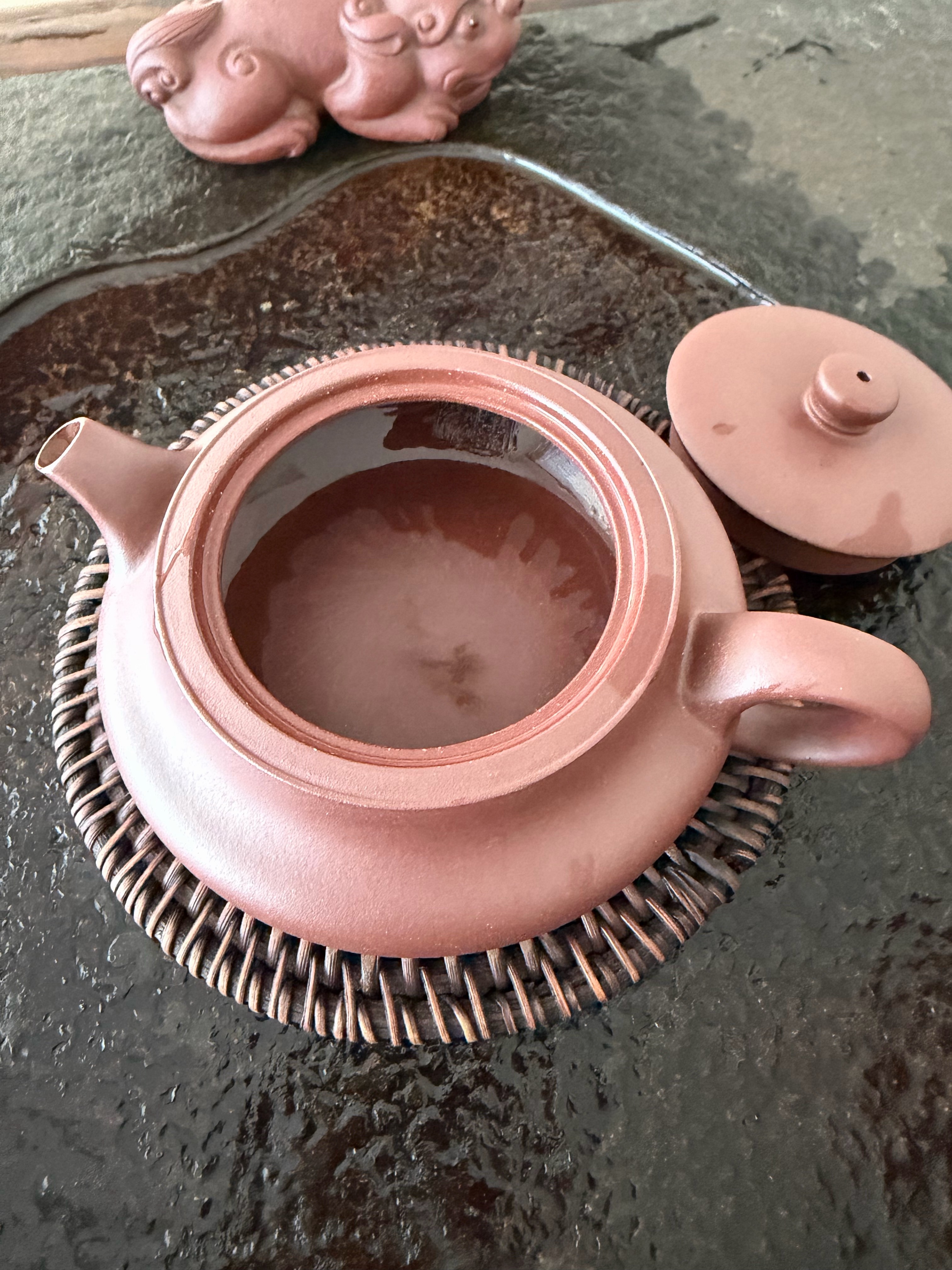 昨天朋友送了个茶壶,小小的一两个人用刚好。沏一壶茶吃早餐哈。