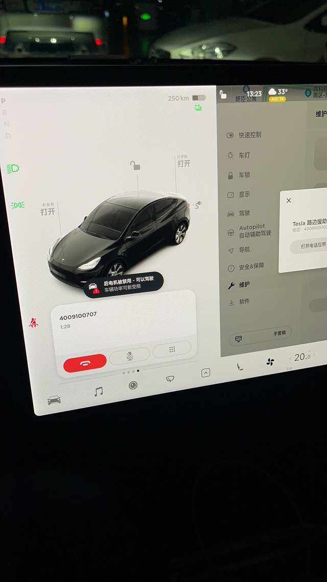 提车不到两个月就搞事情 之前刹车总觉得不丝滑,踩下去像是分了很多段,也像有东西卡着,今天驾驶中突然顿了一下,就显示后电机被禁用了,不知道跟之前刹车奇怪脚感有没有关系,后面两个轮子没动力了,幸好能开,联系400,让开到附近维修站,过去下载数据检测,发现逆变器坏了,需要更换,一周时间,慢慢等吧,换好后因为电机更换部件,还要去车管所备案,糟心糟心。