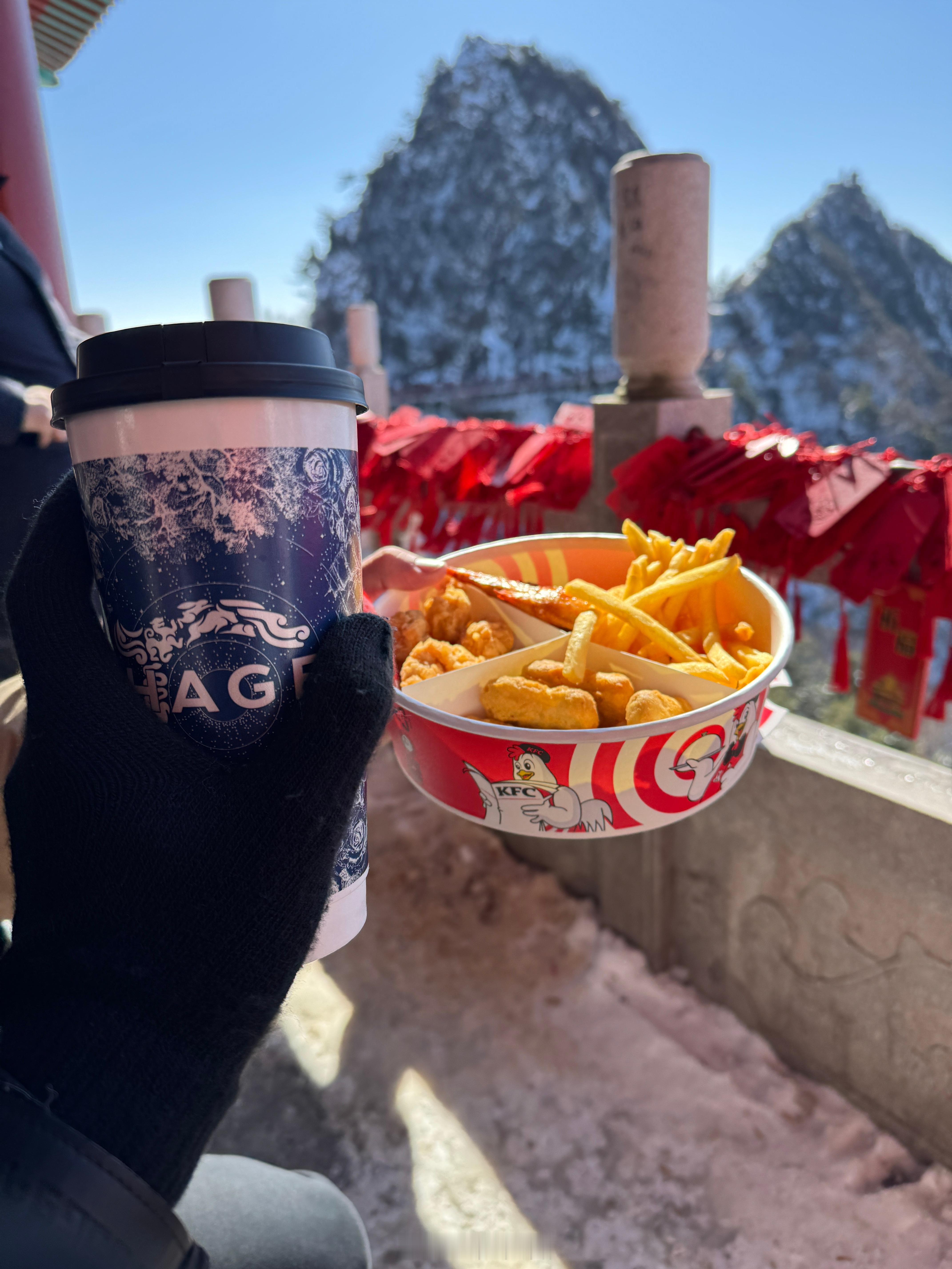 谁把外卖点到老君山山顶了年初玩了一趟老君山顶其实吃的巨多!商业化做的真挺好像是夸父炸串、肯悦咖啡、肯德基和茶姬以及等等等等等都有!而且像是茶姬还有图6这个限定,蛮有仪式感的