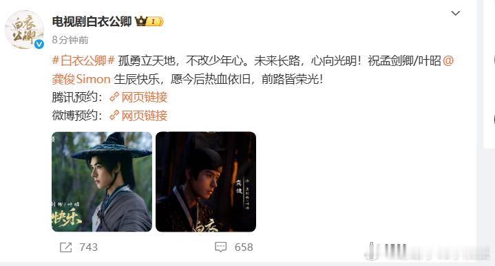 龚俊白衣公卿庆生剧照白衣公卿为龚俊庆生暗夜潜行衣胜雪,黎明破晓志如铁。龚俊用演