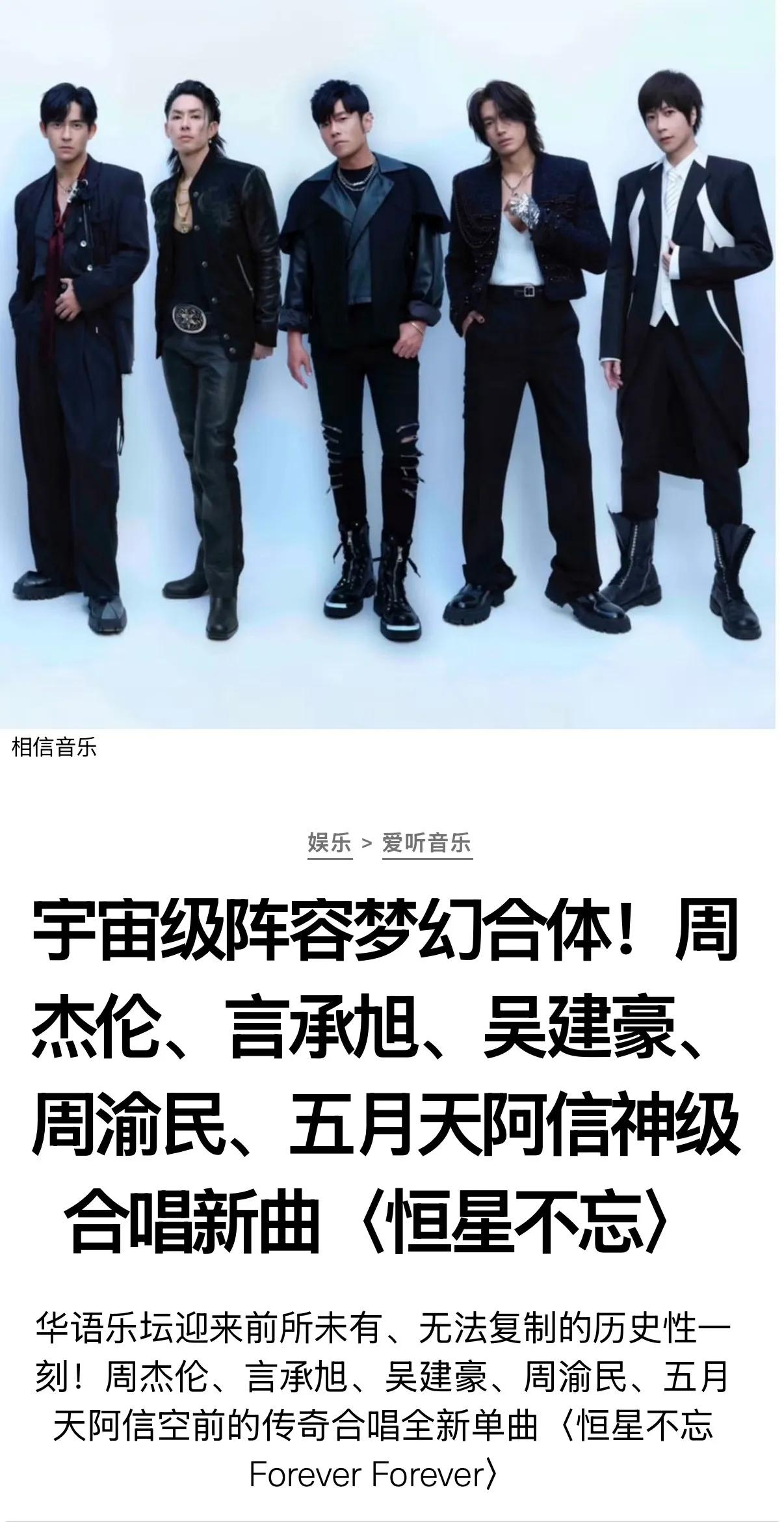周杰伦阿信联手F3,新歌《恒星不忘》引爆青春回忆! 华语乐坛迎来历史性合作!周杰伦与五月天阿信携手F4成员言承旭、吴建豪、周渝民,共同推出全新单曲《恒星不忘Forever Forever》,被乐迷誉为“宇宙级梦幻合体”,歌曲《恒星不忘Forever Forever》已于12月5日在QQ音乐、酷狗音乐、酷我音乐等平台独家上线。周杰伦阿信言承旭吴建豪周渝民新歌 taj周杰伦 阿信 五月天logo 阿信生日蛋糕