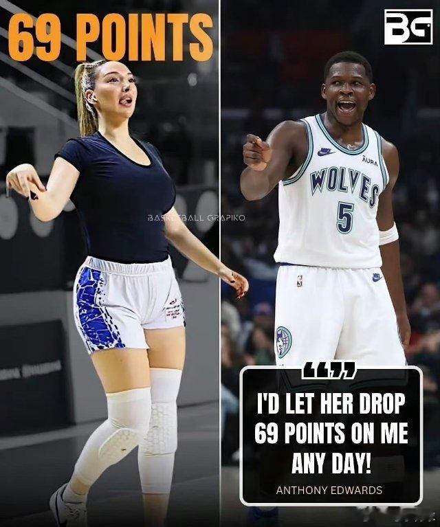 爱德华兹的审美原来和哈登一样!狼王爱德华兹最近盯上了土耳其性感女篮运动员!土耳其篮球女运动员西迈·纳兹·厄格特在最近的一场比赛中狂砍69分,震惊了篮球界。森林狼球星爱德华兹注意到了她的表演,说道:“我愿意天天让她在我头上拿下69分!” 这……华子,不愧是你,喜欢就要大胆说出来!爱德华nba吐槽大会