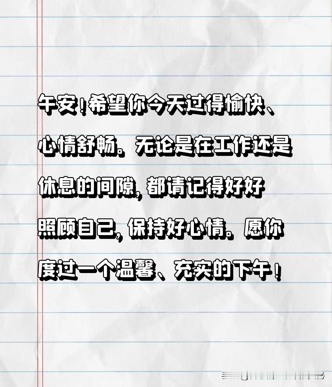 午安!希望你今天过得愉快、心情舒畅。无论是在工作还是休息的间隙,都请记得好好照顾