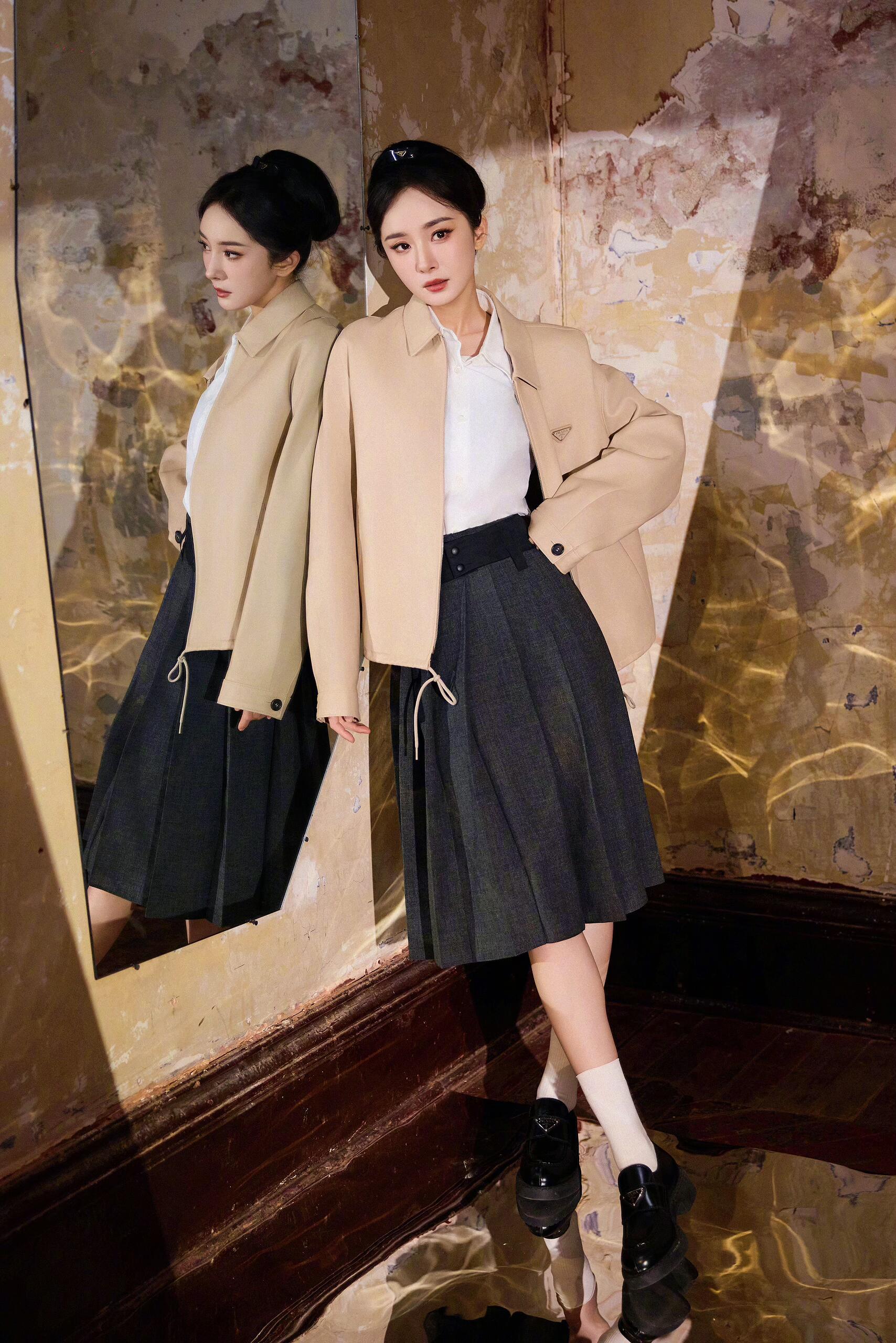杨幂 x Prada杨幂出席T Magazine风格论坛,新造型以Prada标志性浅棕夹克,搭配黑灰粗花呢半裙,内配白衬衫和白袜厚底鞋,简约利落又不失优雅