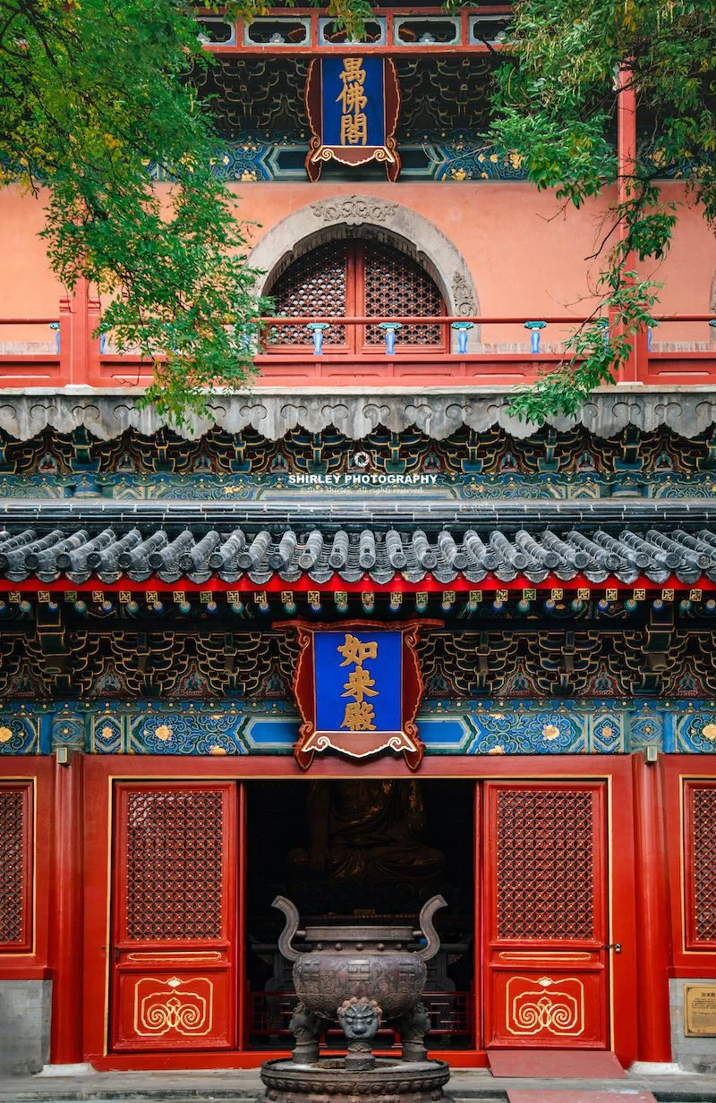 北京现存三个转轮藏中唯一开放的一处,通体采用金丝楠木,八面360个藏经柜,雕刻华丽,极尽繁复之美。