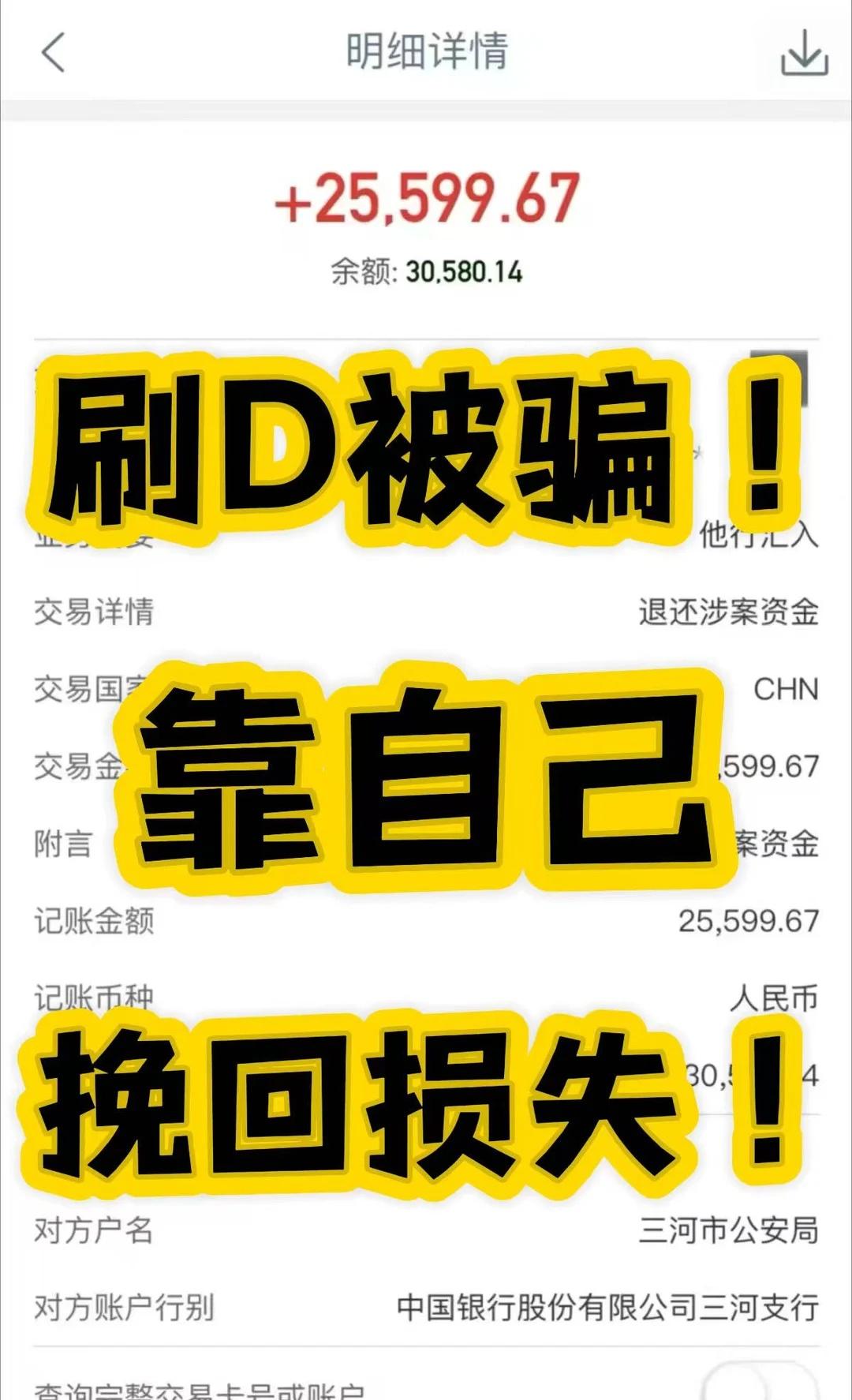 刷D被骗!我靠自己成功挽回损失! 我作为一名反诈工作者,我认为我有义务帮助大家增强被骗的“免疫力”!今天分享的这个真实故事,希望可以帮助到大家! ❗️刚毕业的大学生,10天被骗5万! 🔍 被骗10天全记录 📅第1-2天|甜蜜开场 社交平台刷到“商家好评员,日薪300+”广告,扫码入任务群 💡当时想法:“群里好多人都在接单,应该不会是骗子吧!” 📅第3-4天|小试牛刀 完成3单“零垫付”任务,赚8-15元/单 💡当时想法:“佣金真的到账了,终于找到靠谱副业” 📅第5-6天|放饵钓鱼 “导师”私信说可升级接“高佣金单” 🎯心理:被特殊认可+高回报诱惑 💡当时想法:“前面佣金都给了,应该是可以做的” 📅第7天|陷阱启动 接到需垫付的“三联单”: 500元→“完成30%” 2000元→“完成70%” 5000元→“数据异常” 💡当时想法:“都已经投了2500,不投就没了” 📅第8-9天|全面崩盘 客服称“操作超时触发风控” 要求转账解冻 💡当时想法:“都到这一步了,放弃的话钱就都打水漂了” 📅第10天|彻底消失 人消失|群解散|APP登不上 💰最终损失:2万积蓄+3万网贷=5万 💬骗子话术库 诱惑阶段: “时间自由,多劳多得” “一单一结,绝不拖欠” 建立信任: “与正规平台合作” “看别人赚的截图” 施加压力: “只剩最后2名额” “半小时内必须操作” 危机处理: “你操作失误导致异常” “再补一单就全返” ⚠️4步识破诈骗平台 1️⃣入口怪:扫码下载|商店搜不到 2️⃣界面糙:有错别字|只有在线客服|数据延迟 3️⃣提现难:以各种借口收取各种费用,总是无法提现 4️⃣认证坑:要身份证+刷脸+手持照(信息会被盗用) 🌀沉没成本陷阱 500元→“试试看” 3000元→“已经赚回些” 1万元→“不做完钱就卡住” 3万元→“再借点,拿回就收手” 5万元→“没退路了,只能赌” ✅陷入骗局立即做4件事 1.及时止损,不再转钱 2.保存所有聊天和转账记录 3.联系银行尝试拦截转账 4.尽快带上记录报警 遇到骗局的三个凡是: 1.要先垫钱→是骗局 2.说轻松高薪→是陷阱 3.在非正规平台→有风险 如果您不幸被骗,可以随时联系我,我们会努力帮助您挽回损失!
