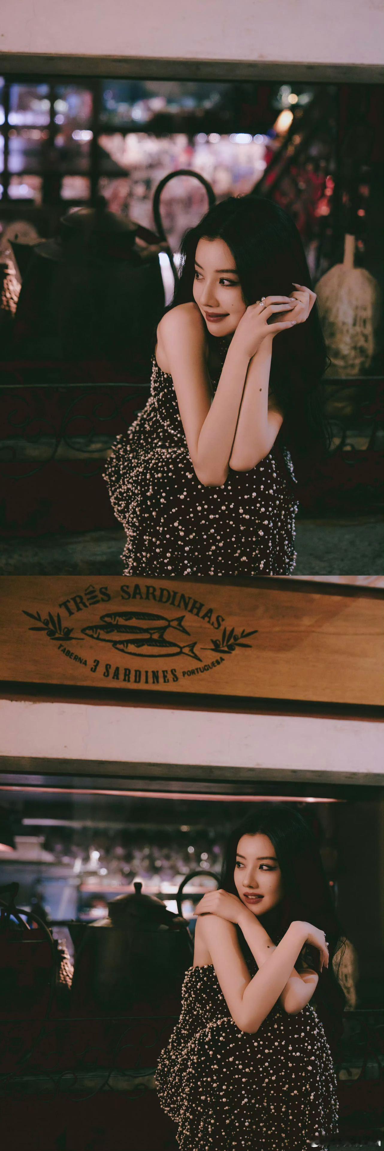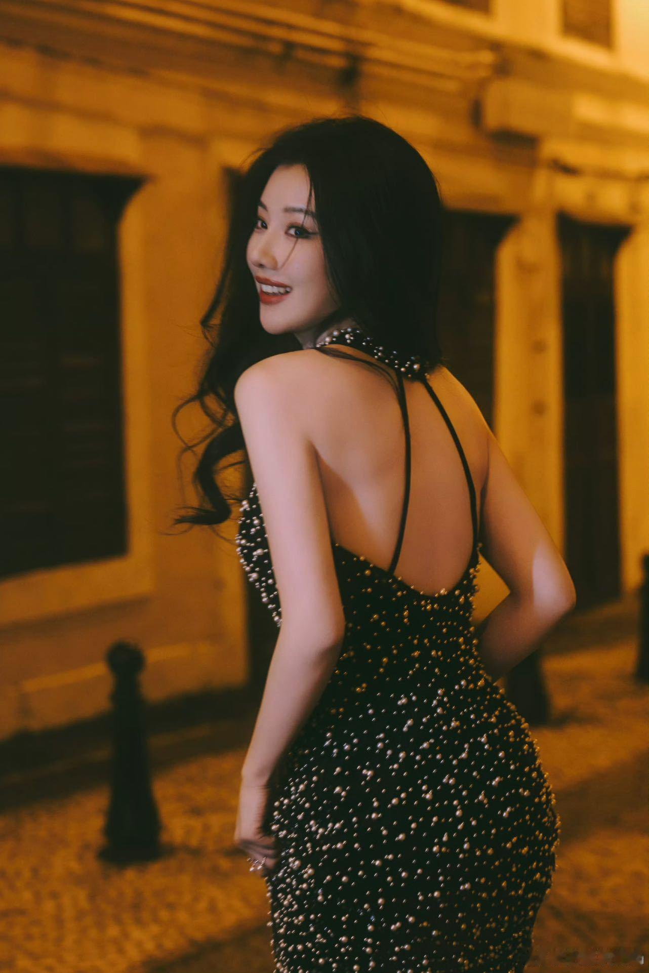 王鹤润居然变成这样了 黑珍珠露背裙造型亮相爱奇艺之夜,美得很轻松~纱裙下的薄背肌线条线太绝了 王鹤润裙子上好多珍珠